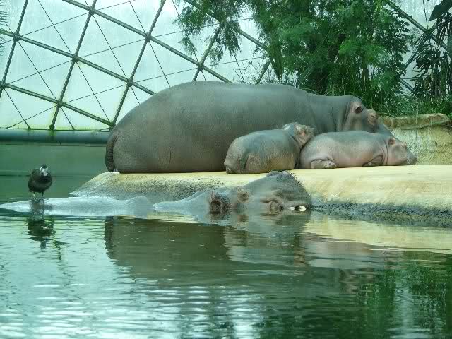 Sie sehen im Wasser zwar nicht aus wie eine Gazelle, muten aber doch graziöser an als auf dem Festland. Falls es trotz Auftrieb und Strampeln nicht schnell genug geht, helfen die tonnenschweren Mütter - wie im Foto die gebürtige Berlinerin Nicole, Jahrgang 2000 - nach und drücken ihren Nachwuchs an die Wasseroberfläche. Am 22. Januar dieses Jahres war das Hippo-Mädchen auf die Welt gekommen, zwei Monate nach ihrer Halbschwester, die ebenfalls noch keinen Namen hat. Den darf später ein Pate bestimmen. Fest steht aber schon eines: Die brummigen Mädels, deren Geburtsgewicht fast 50 Kilo betrug, sind Wunschkinder. Weniger des natürlichen Vaters Ede als von Bernhard Blaszkiewitz. Der Zoo-Direktor, der Flusspferde zu seinen Lieblingstieren zählt, hatte dafür gesorgt hatte, dass die Flusspferddamen die Pille absetzen.