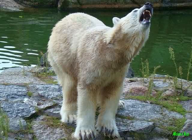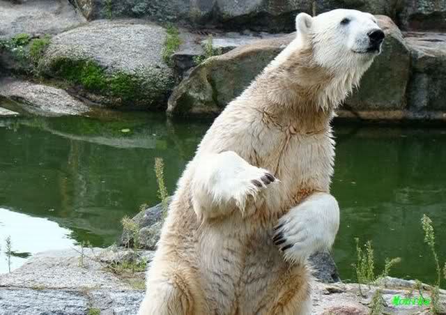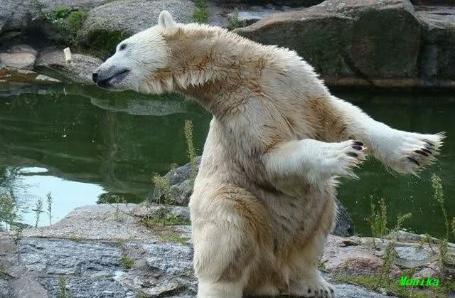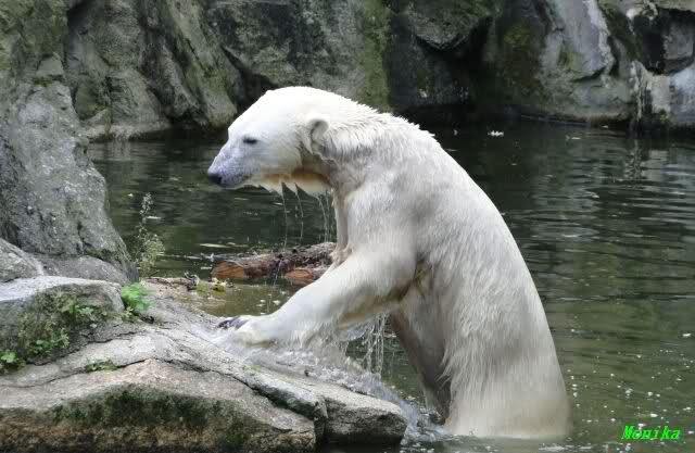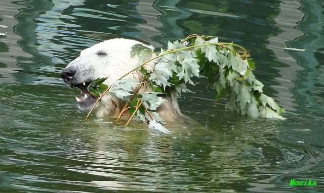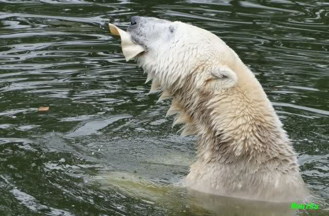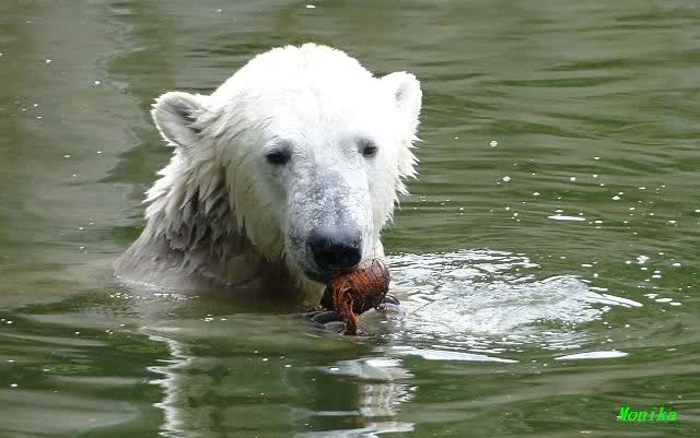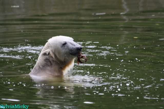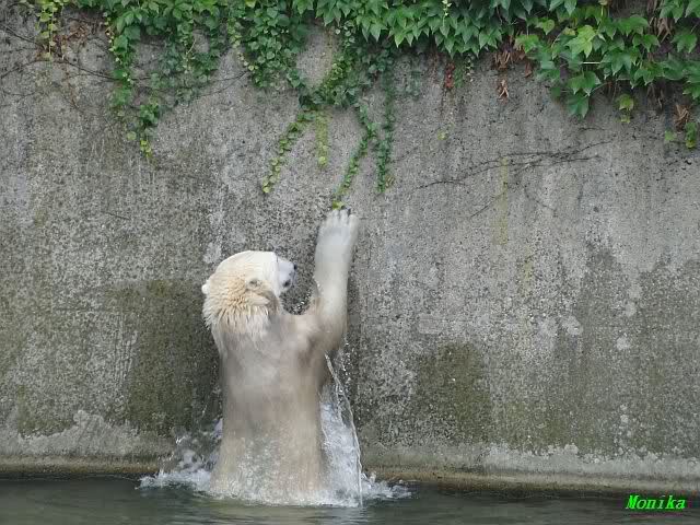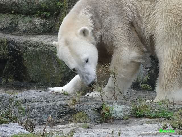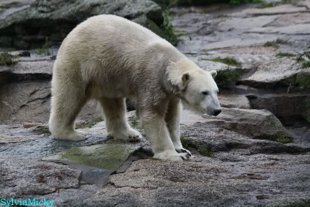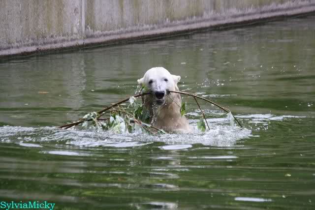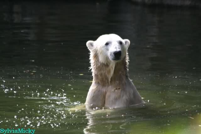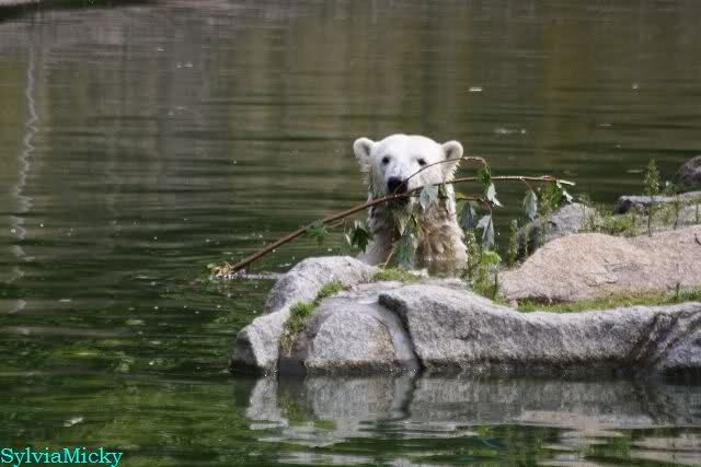 Habe gerade die Mitteilung bekommen, dass Knut heute bei der Fütterung das erste Mal auf der kleinen Insel, wo Lars immer stand, auch Männchen gemacht hat.