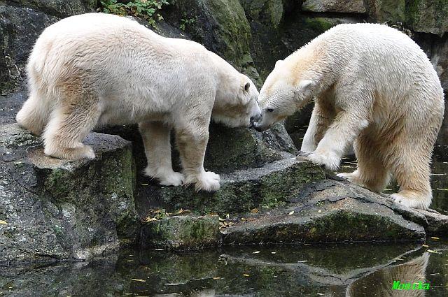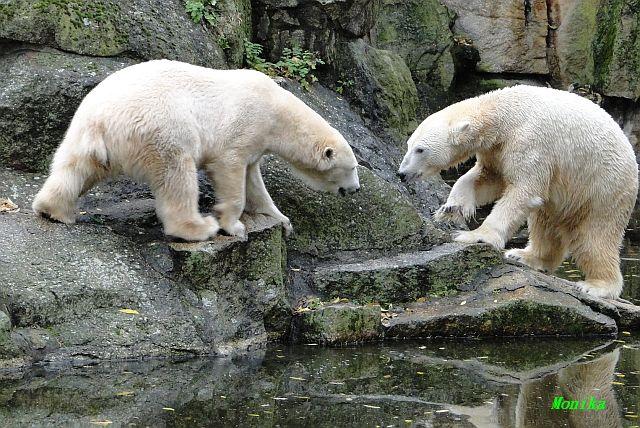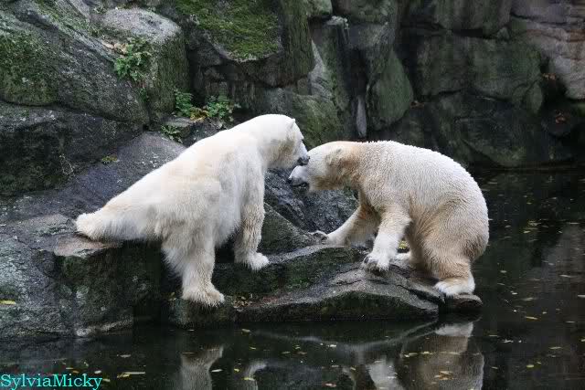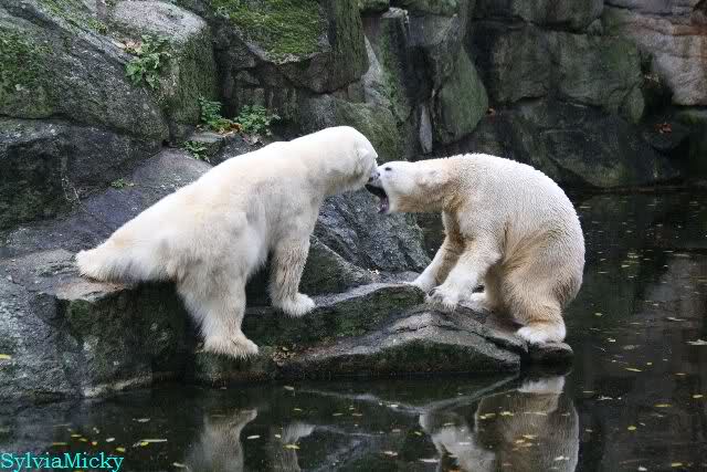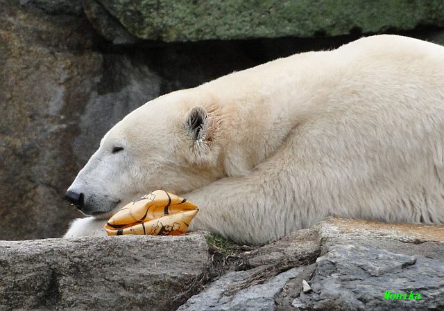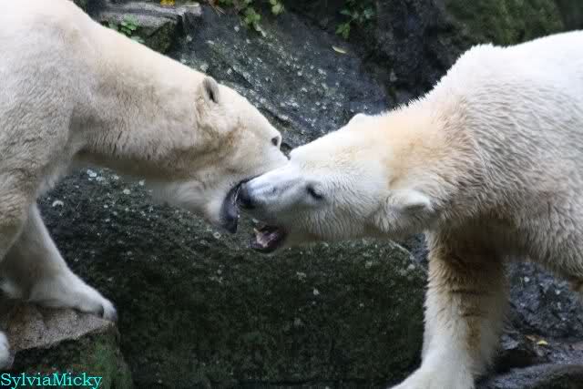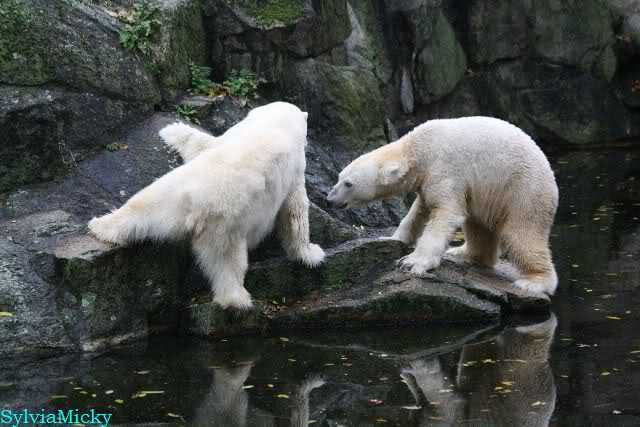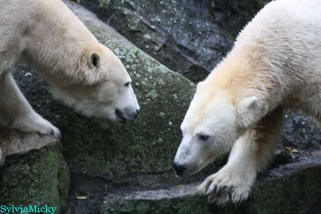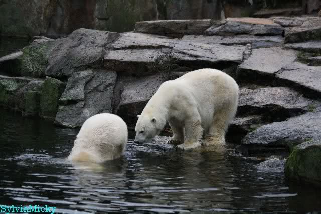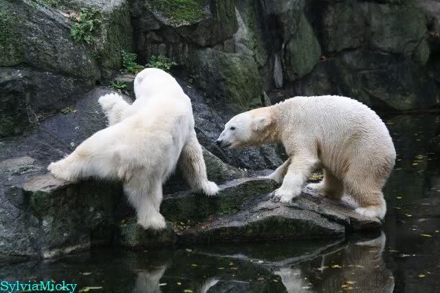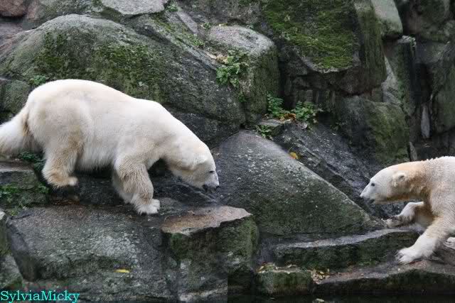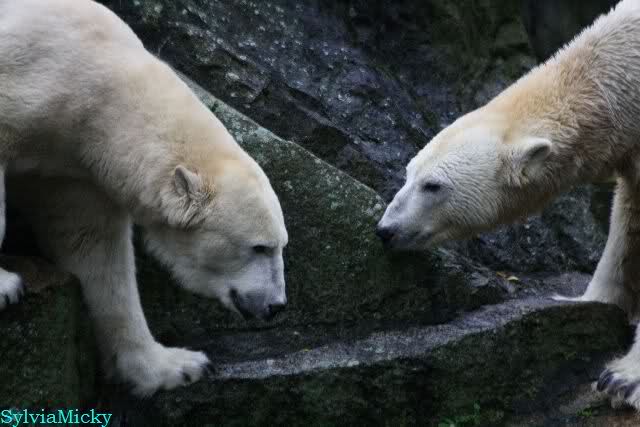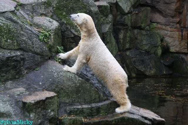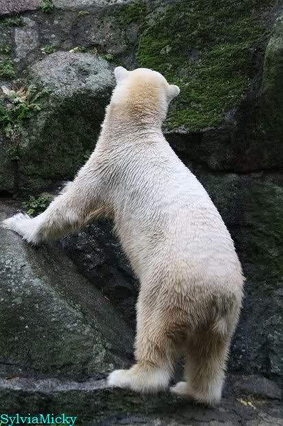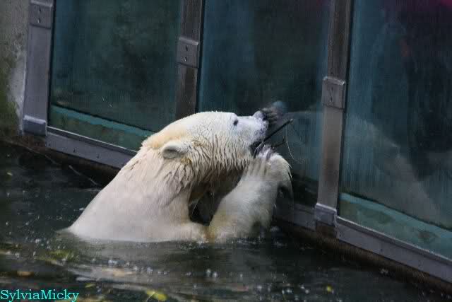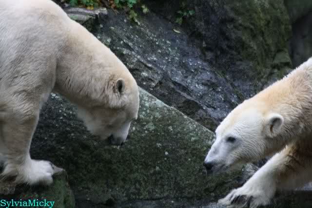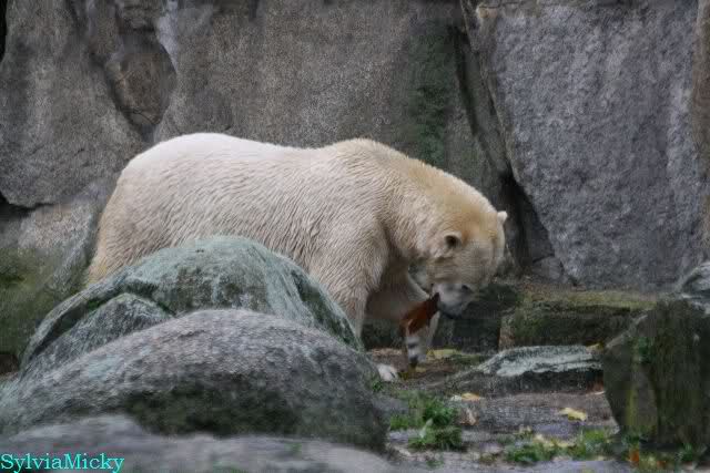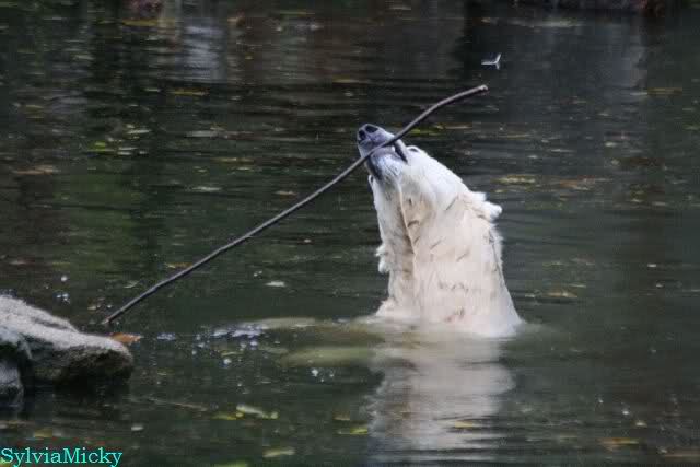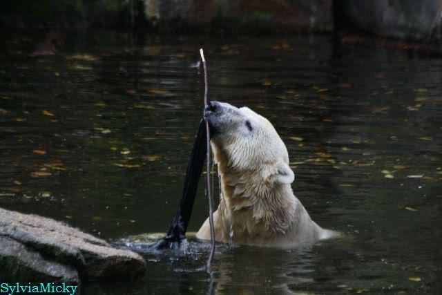 Ich bin der festen Überzeugung, wenn die Bären Beschäftigung hätten, wäre für Knut die Eingewöhnung leichter. Er hätte etwas zum spielen, siehe z.B. die Bilder mit der Kordel.