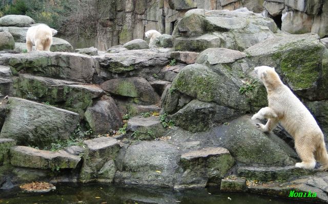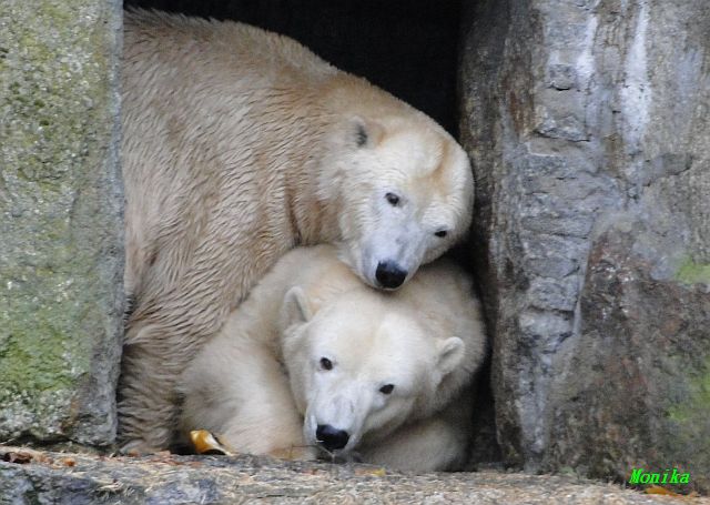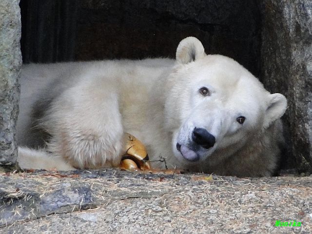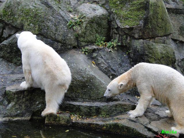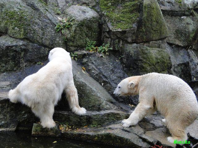 Als ich am frühen Nachmittag den Zoo verließ, lief Kati immer noch über die Anlage und Knut lag noch oben an der Mauer.