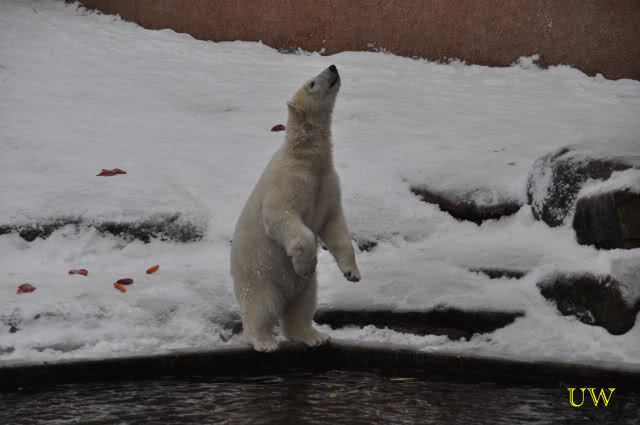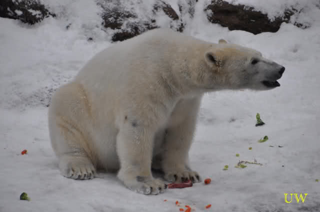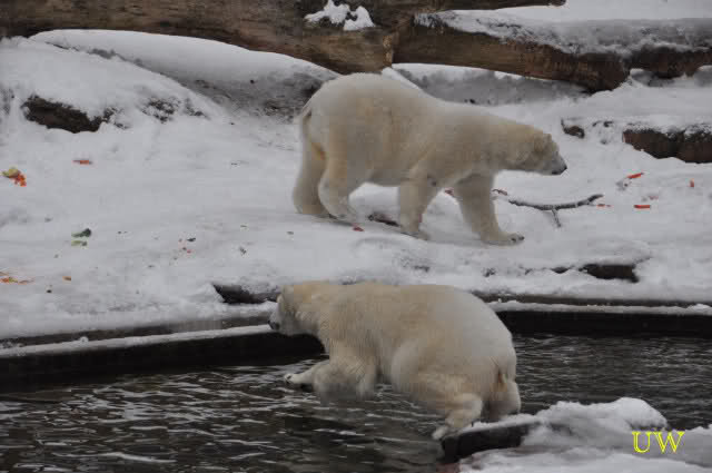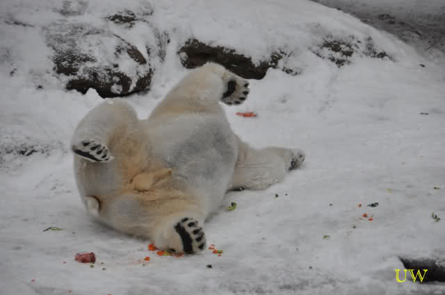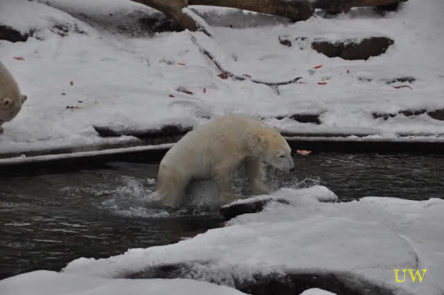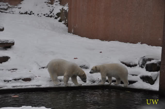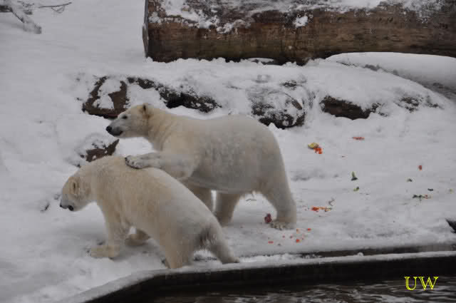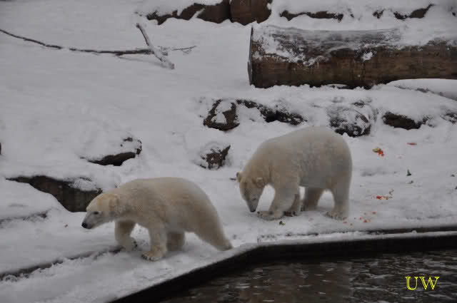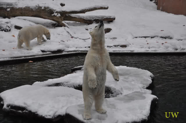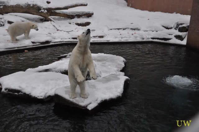 Interessant war, dass bei der Fütterung (hier wird seit einiger Zeit viel über die beiden Bärchen und auch Vera erklärt sowie auf die Folgen des Klimawandels für die Eisbären hingewiesen), nicht mehr von Mitte Februar die Rede war, dass die beiden weg kommen, sondern als Termin wurde "Frühjahr" genannt.