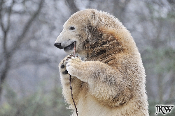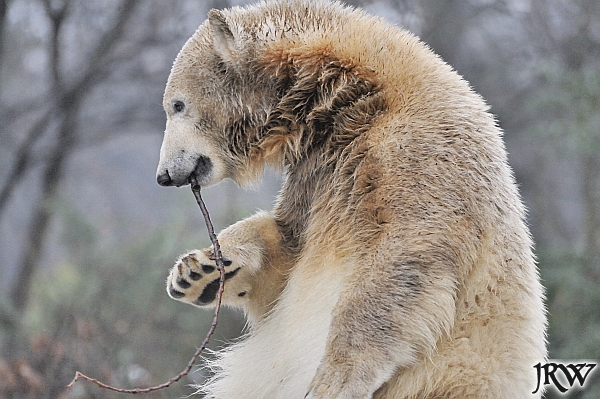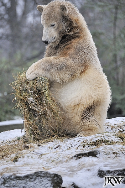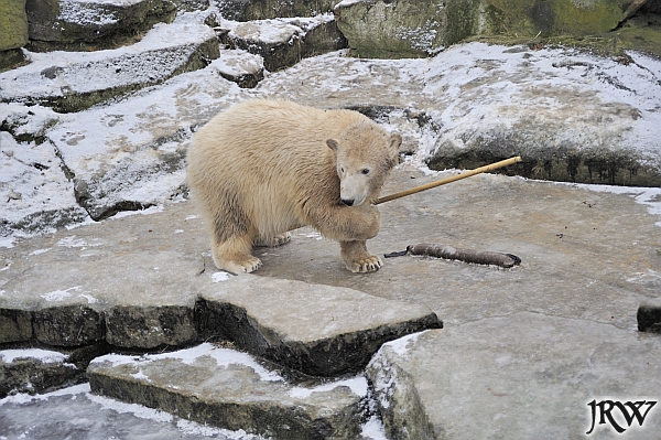 nachgereicht am Montag. Danke Jessie für die schönen Fotos von unserem Polar Bärchen. Knut am Tag nach dem Blitzeis. Das richtige Wetter für ihn.