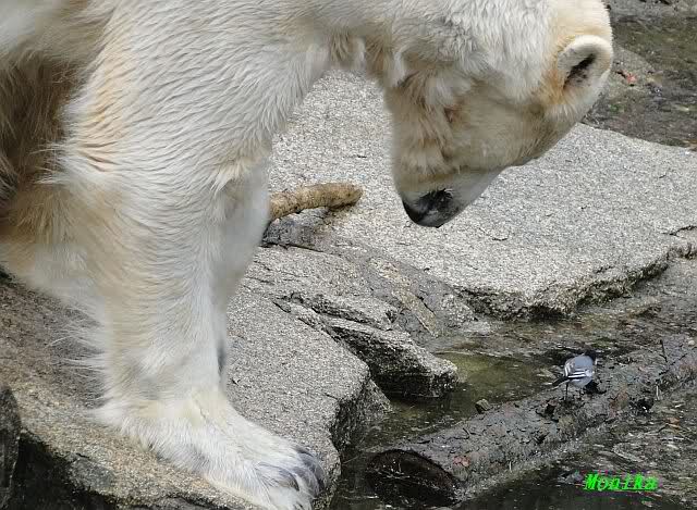 Knut hatte eine süße Begegnung mit einer kleinen Bachstelze. Der kleine Vogel hielt sich sehr dicht bei Knut auf. Er schaute sie ganz lieb an. Irgendwie hatte man das Gefühl die kleine Bachstelze spielte mit Knut. Sie ließ ihn ganz dicht herankommen um dann einen anderen Platz anzufliegen, aber immer fast neben seinem Körper.