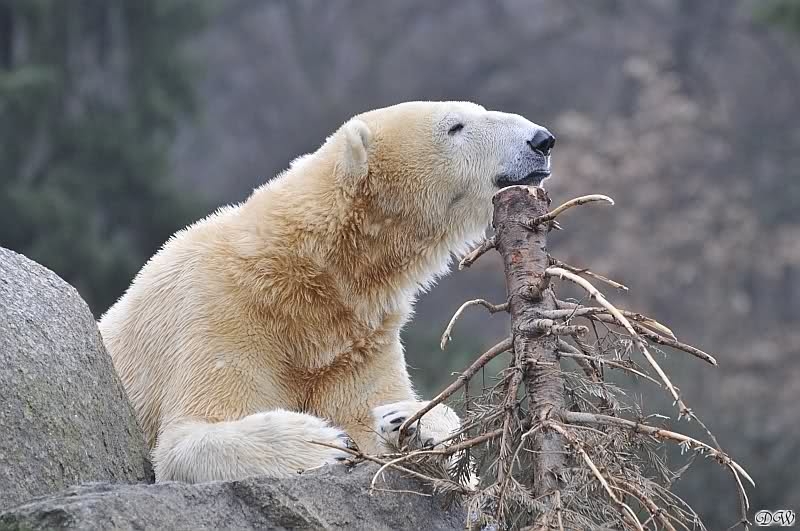 Es war ein grauenhaft kalter Tag heute. Vier Grad und eisiger Wind. Nachmittags schienen auch die Bären nicht so begeistert zu sein und schauten schon ab 13.30 ab und zu nach, ob sich die Tür nicht bald öffnen würde.