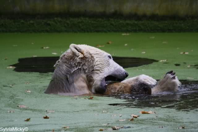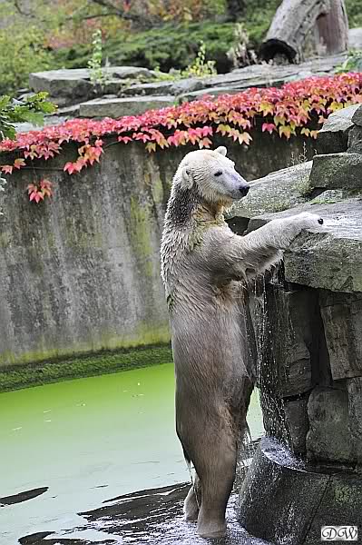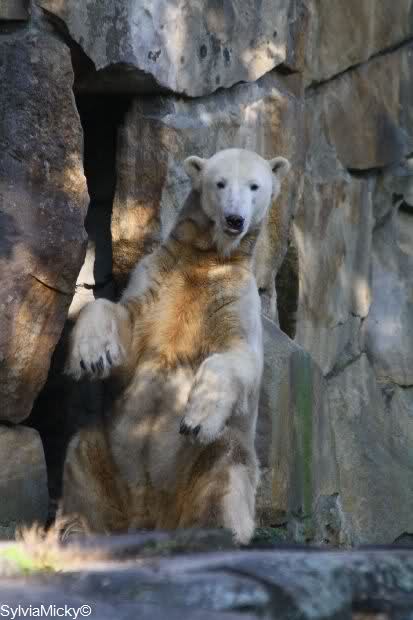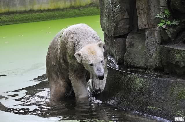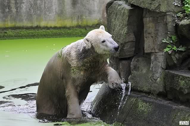 Hallo, Ihr aufmerksamen Beobachter und treuen Besucher von "Knut" und seiner "Belissima". Ich (Anne) bin ja leider nicht life bei Euch im Zoo, (pure Neid bricht aus) meine große Sorge, mir scheint der Wassergraben Stand doch sehr, sehr niedrig, oder täuscht das so sehr?????