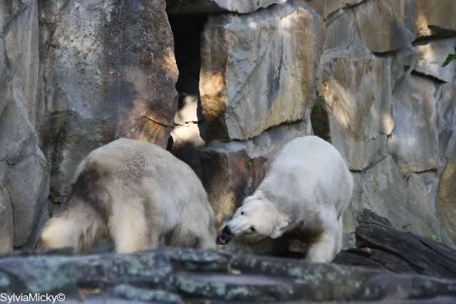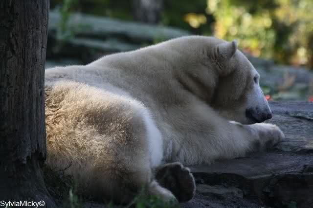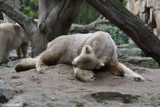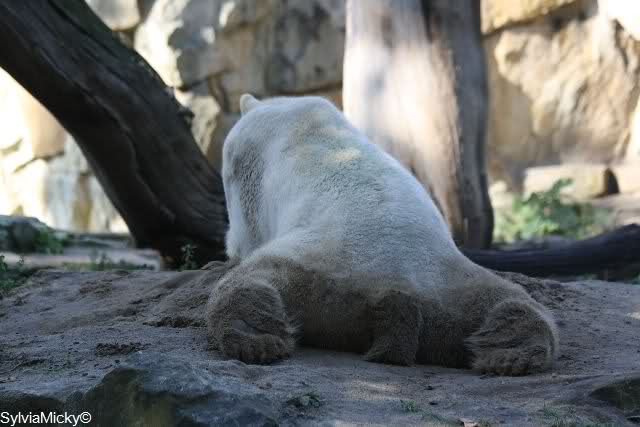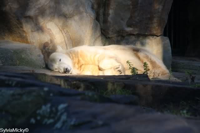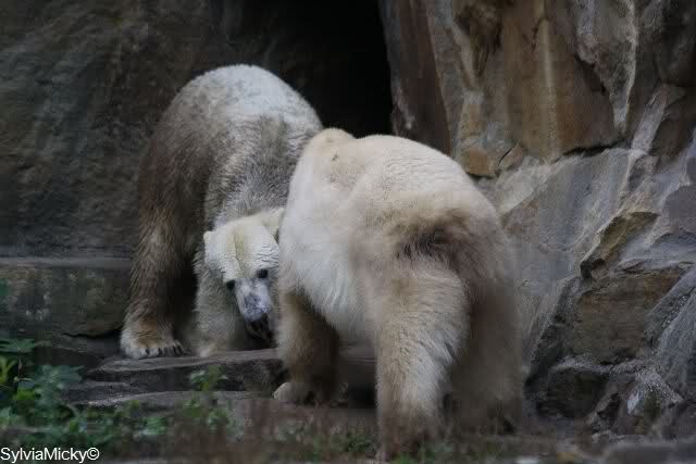 Es war heute sehr, sehr voll im Zoo. Bei der Fütterung standen die Besucher in Fünfer-Reihen bei Knut und bei den Braunbären in Dreier-Reihen.