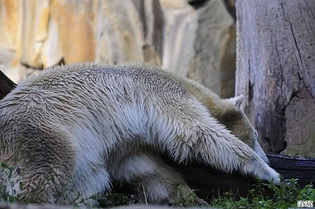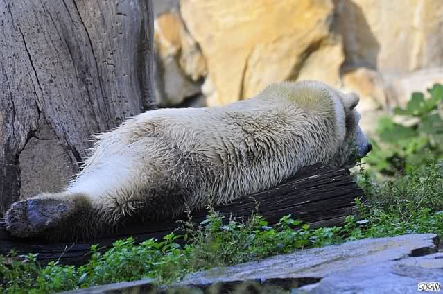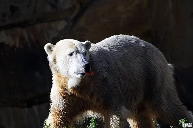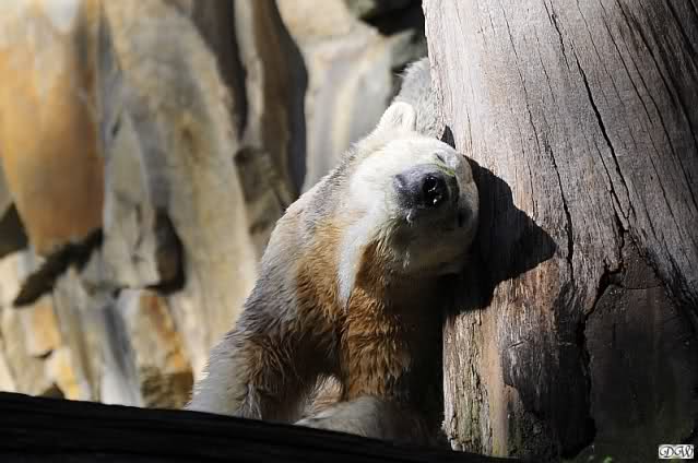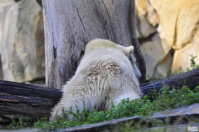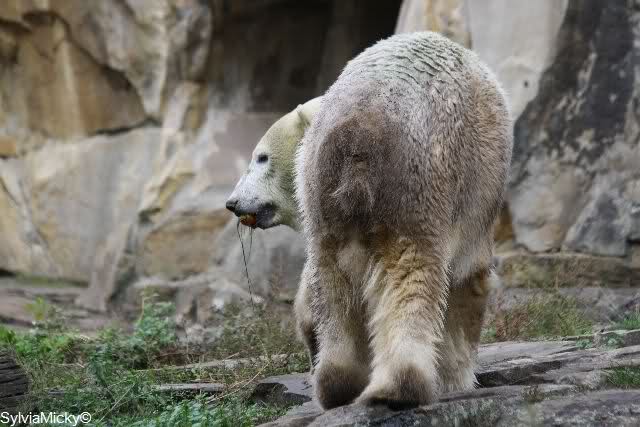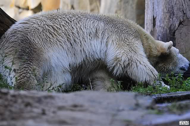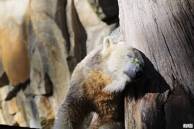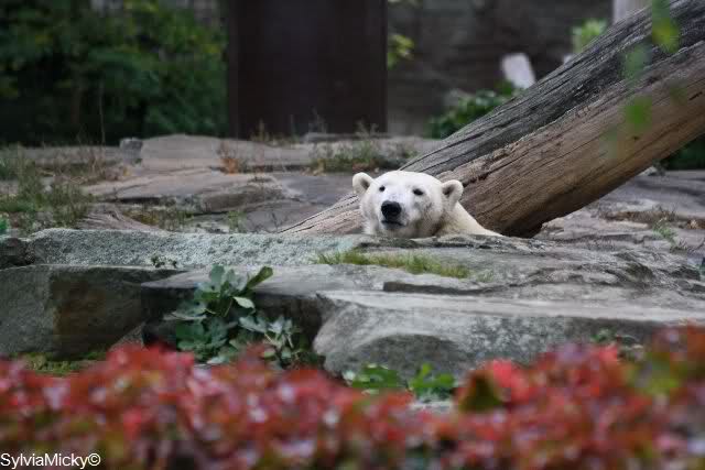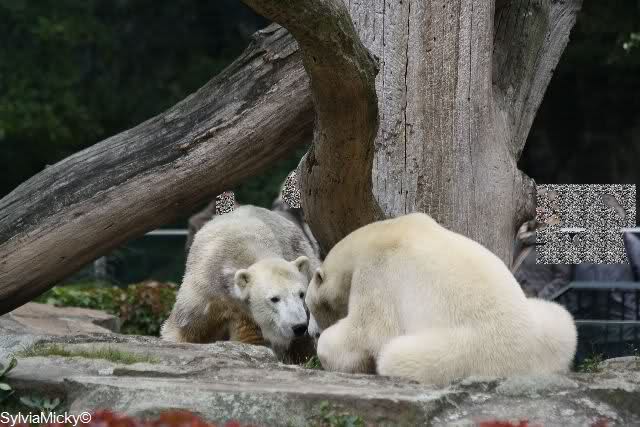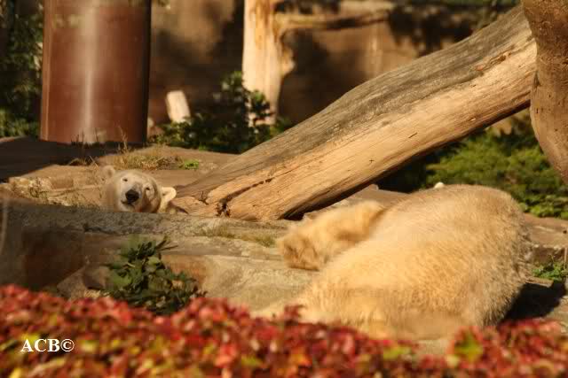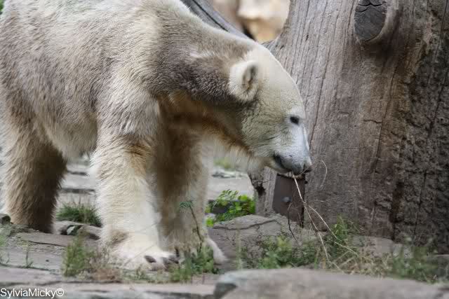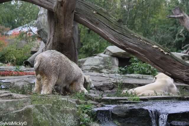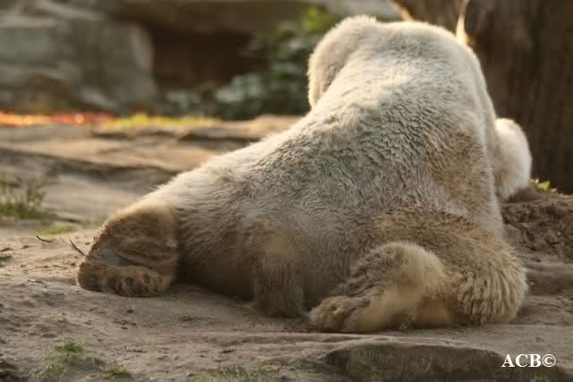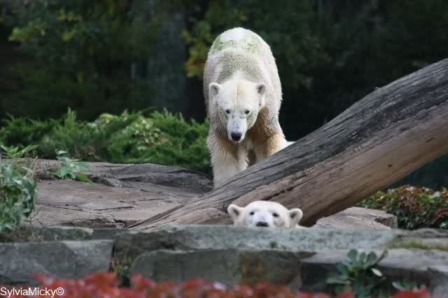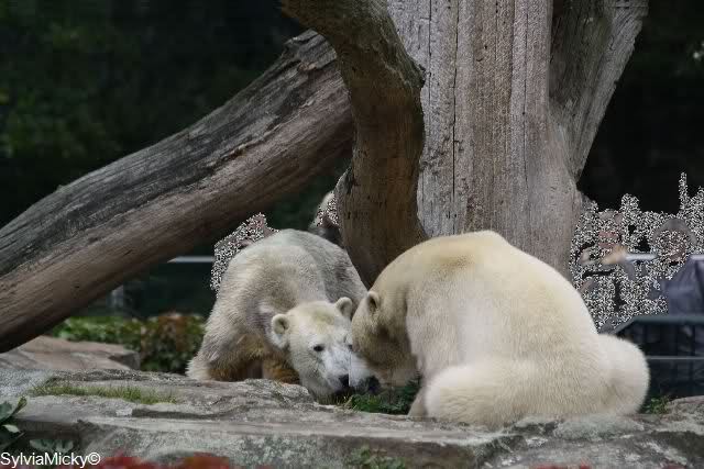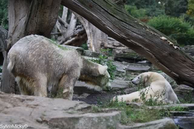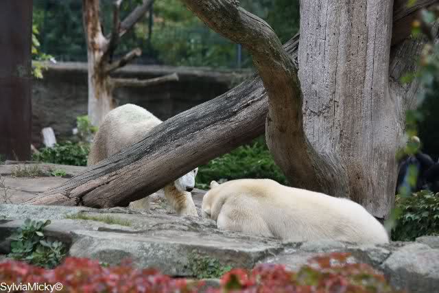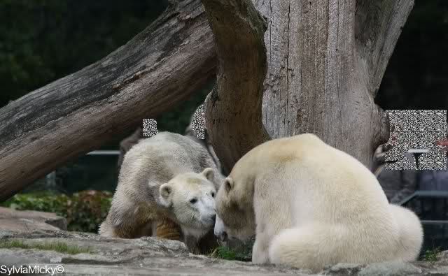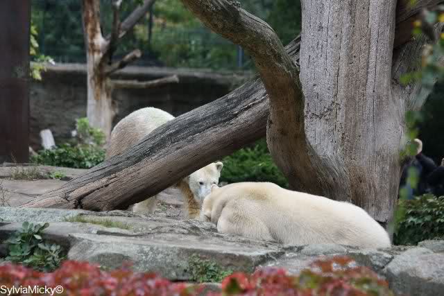 Es war ein schöner Tag heute. Der Eisbär Knut war, wie schon morgens glücklich und aufgeregt von SpreewaldMarion berichtet (Gisela hat den Namen versehentlich nicht erwähnt) wie ausgewechselt. Es war so schön ihn wieder so zu sehen. Monika und Sylvia haben schon alles erzählt und ihre Bilder gezeigt. Knut wieder gelöst spielen zu sehen, beide zusammen im Wasser und später beide schlafend auf der Anlage, das war einfach toll anzusehen. Es geht voran mit den beiden Eisbären.