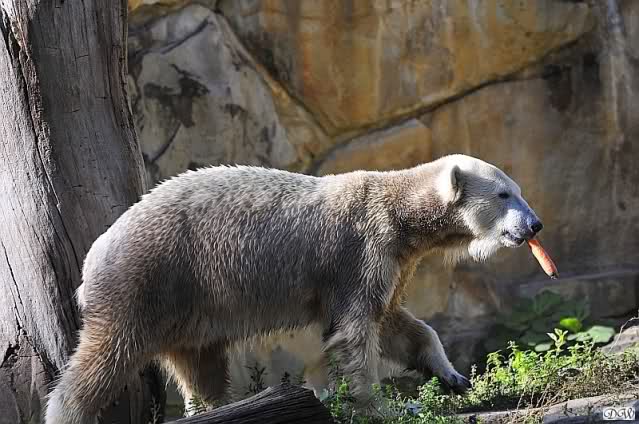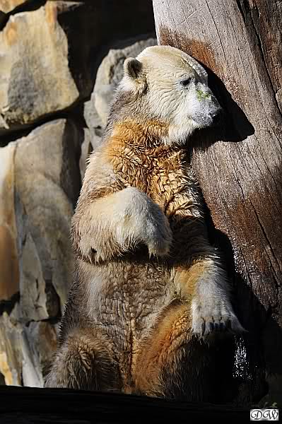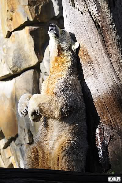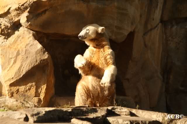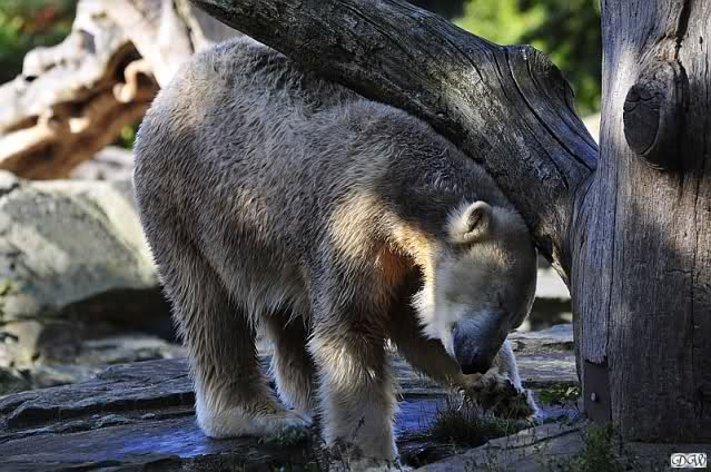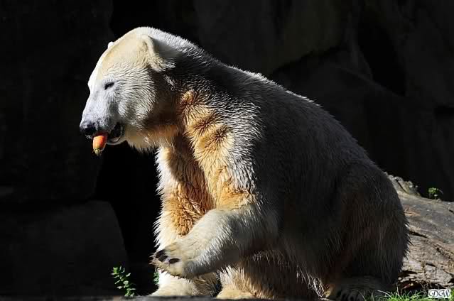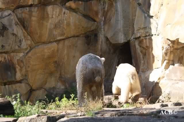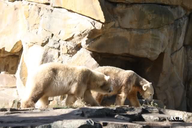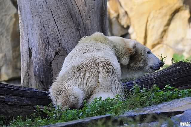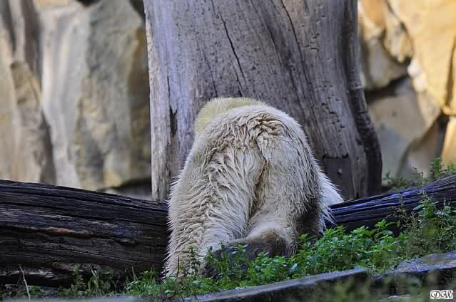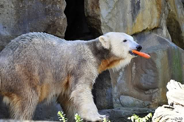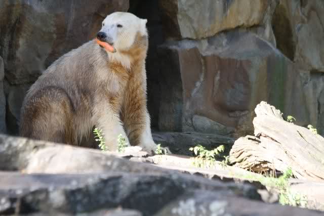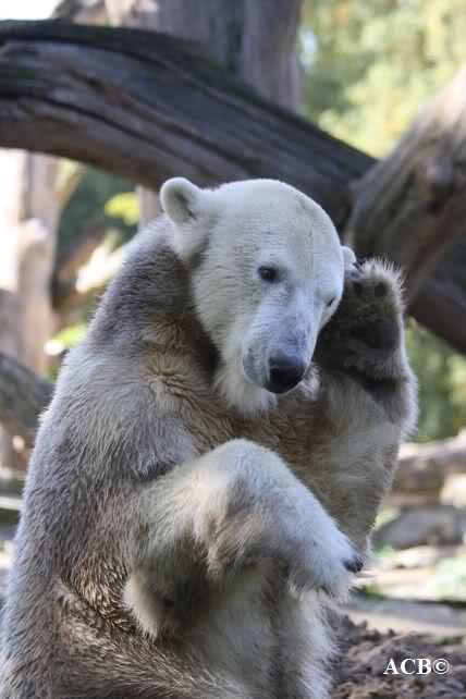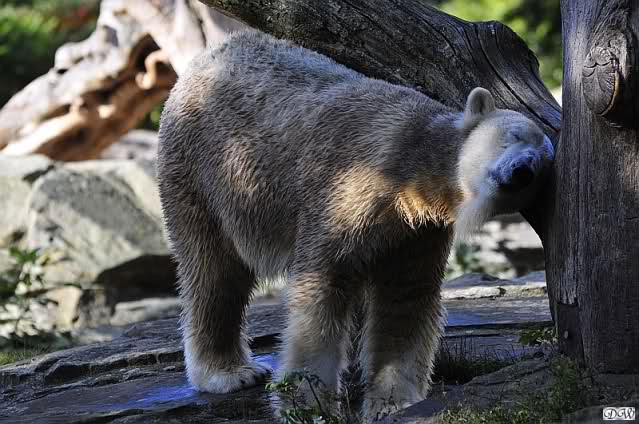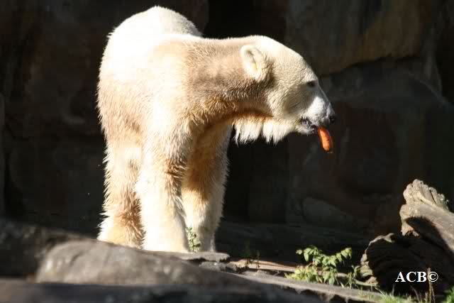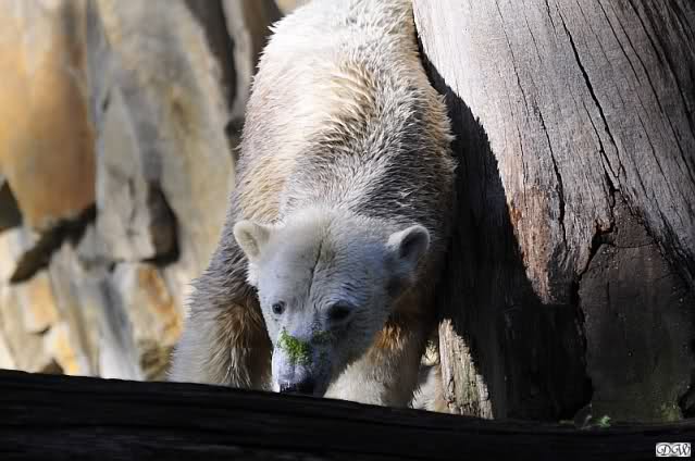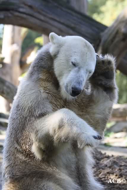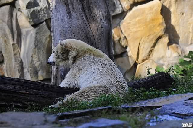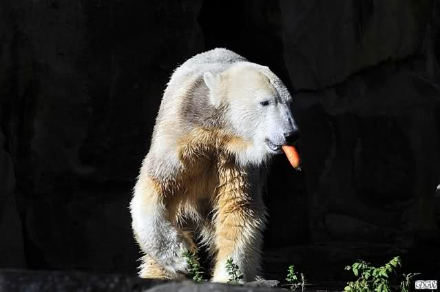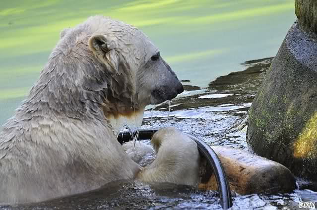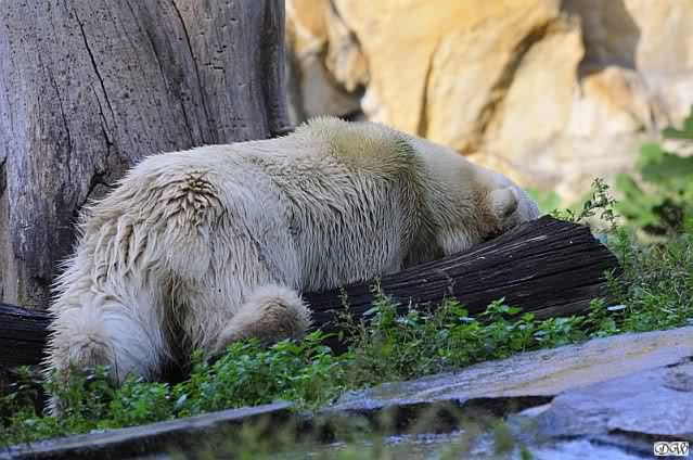 Es war ein schöner Tag heute. Der Eisbär Knut war, wie schon morgens glücklich und aufgeregt von SpreewaldMarion berichtet (Gisela hat den Namen versehentlich nicht erwähnt) wie ausgewechselt. Es war so schön ihn wieder so zu sehen. Monika und Sylvia haben schon alles erzählt und ihre Bilder gezeigt. Knut wieder gelöst spielen zu sehen, beide zusammen im Wasser und später beide schlafend auf der Anlage, das war einfach toll anzusehen. Es geht voran mit den beiden Eisbären.