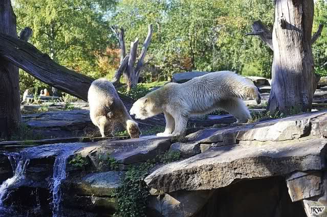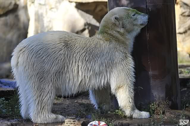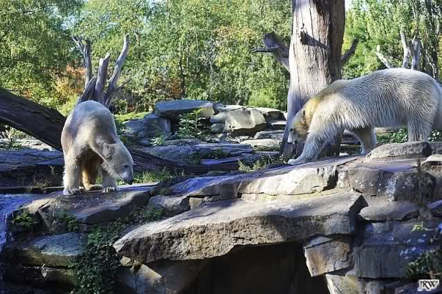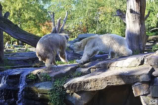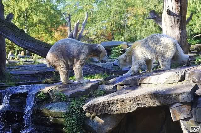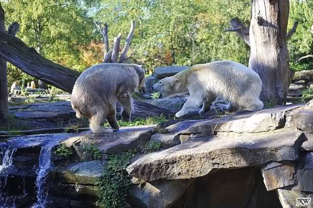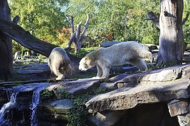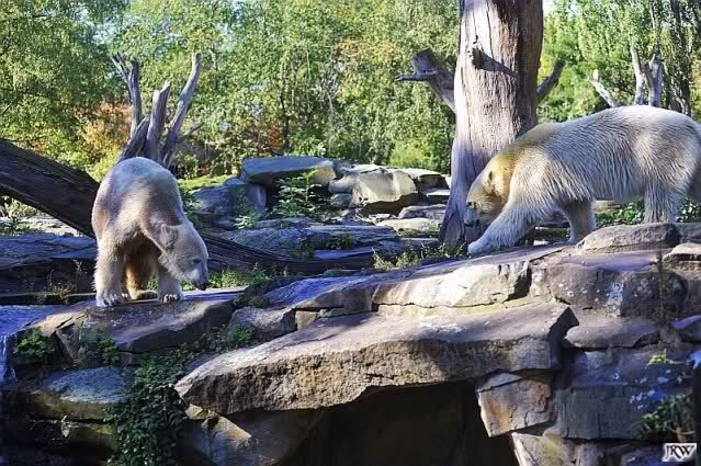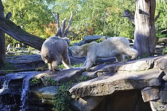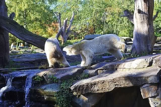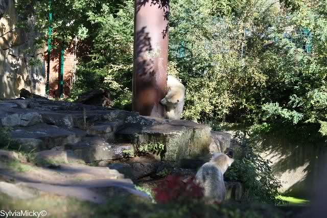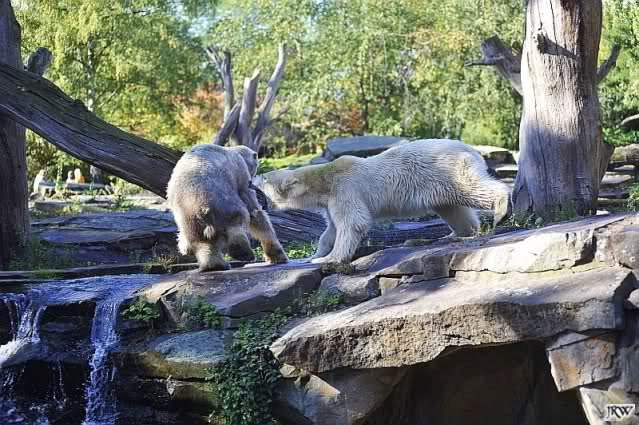 Scheinbar übernimmt das Boxenluder jetzt die Führung im Gehege. Knuti, pass auf Dein Terrain auf. Lass Dir nichts wegnehmen. Verteidige Dein Reich, wie es ein richtiger Eisbär machen muss.