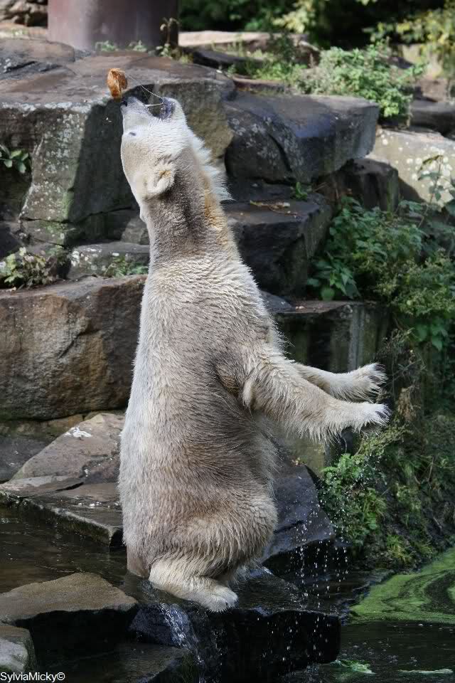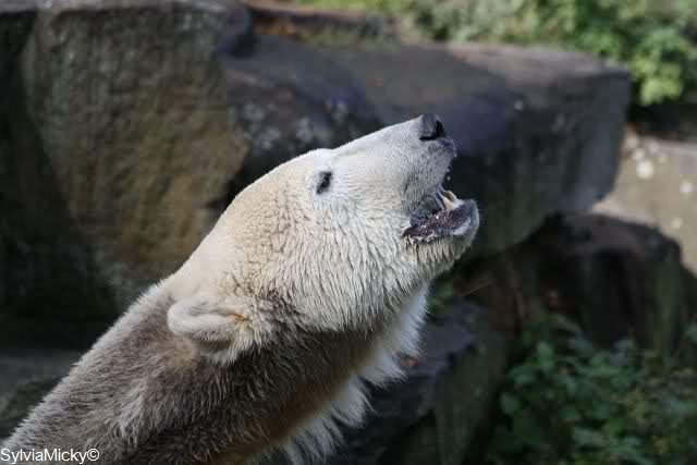 Was war das denn heute? Gianna hat ja den armen Knut förmlich in die Flucht geblasen oder gebrüllt? Wenn das ein Bärenkuss war, na danke. Da kann ich seine Schnute gut verstehen. Armer Knut, ich hoffe Gianna jagt ihm keinen Schreck für's Leben ein.