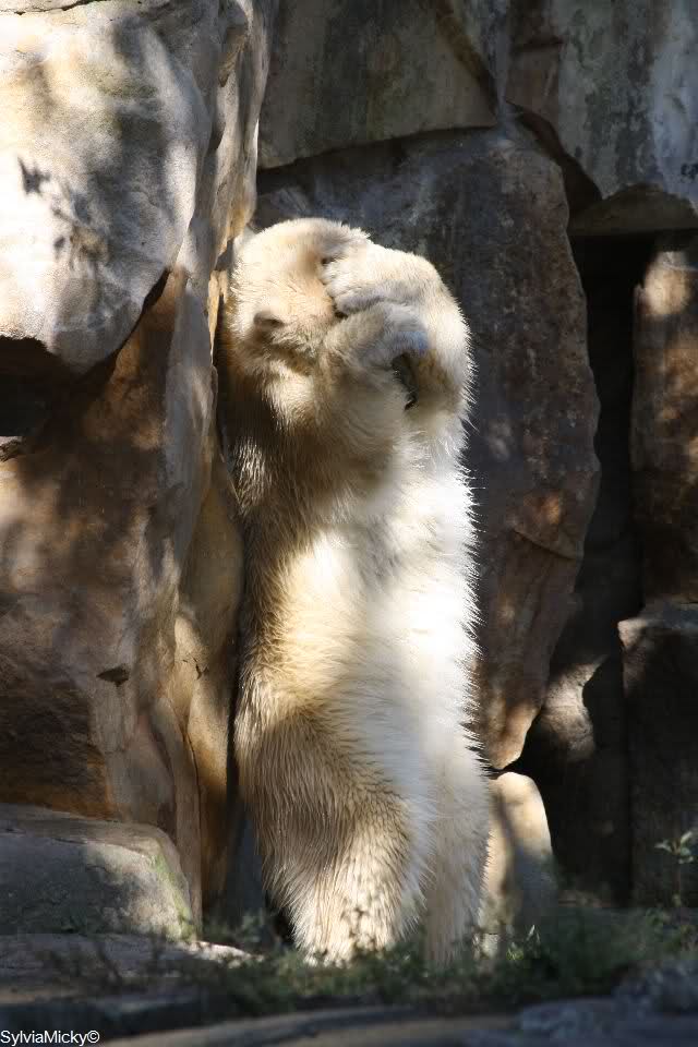 Das sieht so aus, als würde Knut sagen, Papi, ich will zu Dir, wo bist Du? Was ist denn das für ein Vulkan, der hier ausgebrochen ist? Die Frau hat meinen Tagesablauf total durcheinander gebracht. Was soll ich mit der denn anfangen?
