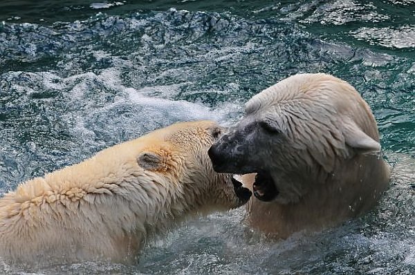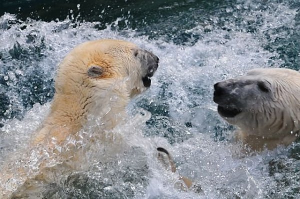 Dann muss ein Eisbärmann schon mal einen Haken schlagen und sich ins nasse Milieu stürzen