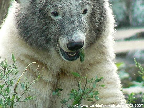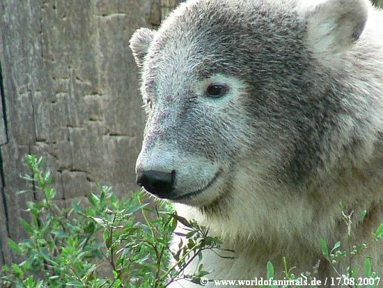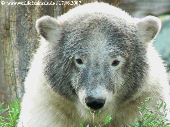 Leider habe ich gestern hier etwas Falsches geschrieben. Der Bär, der auf Simones Foto in Knuts Nähe zu sehen ist, ist ein Brillenbär. Laut Auskunft einer Berlinerin, die jeden Tag in den Zoo geht, sind auf der Anlage neben Knuts Gehege bis ca. 14 Uhr Kragenbären und danach Brillenbären.