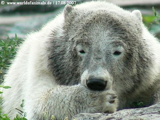He was sucking and nuckering at his right paw very often and long at evening. I heard that this is normal, but I remember to other informations, that it isn´t normal for a eight month old polarbear. All did begin at monday this week.