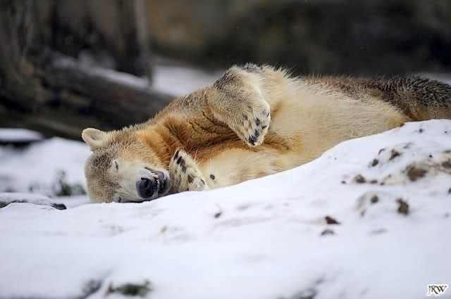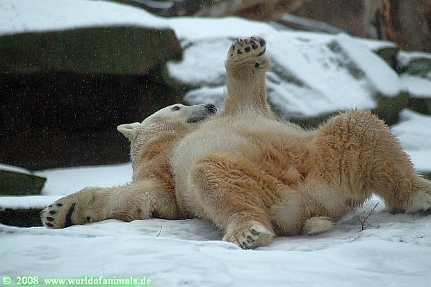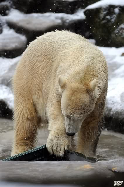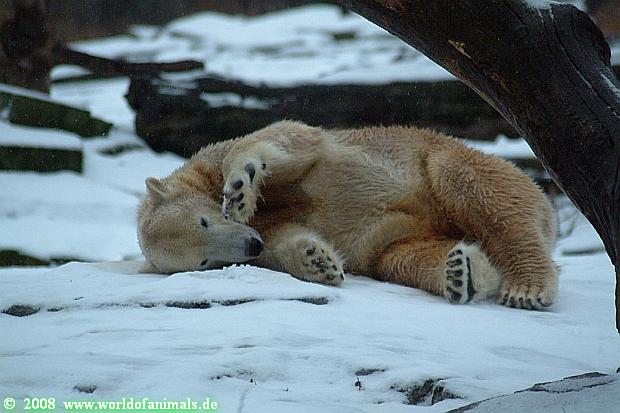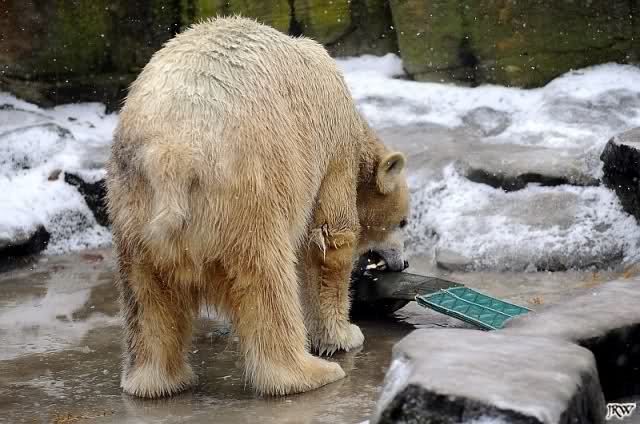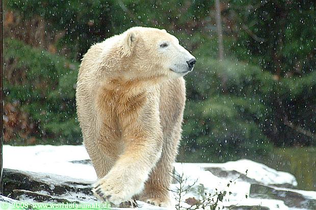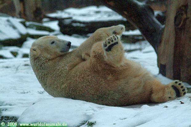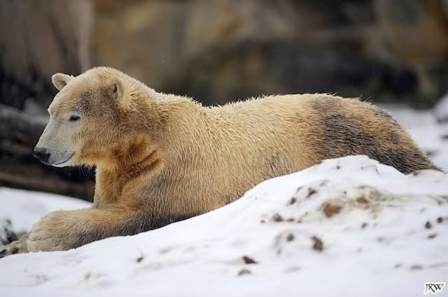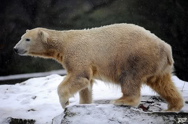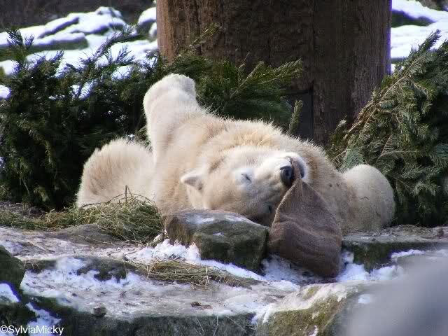 Es war ein nasskalter, trüber und ungemütlicher Sonntag. Trotzdem waren wieder viele Besucher im Zoo. Ich war ab 13:30 h im Zoo. Knut lief auf der Anlage hin und her. Die Fütterung war auch schnell vorbei, aber danach wurde Knut zu einem richtigen Eisbären, der sich im Schnee wälzte und total happy war. Fotos davon gibt es jetzt.