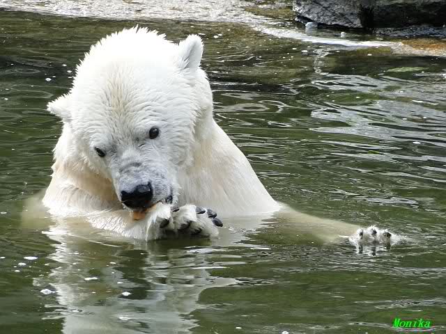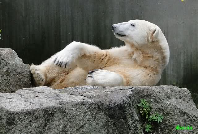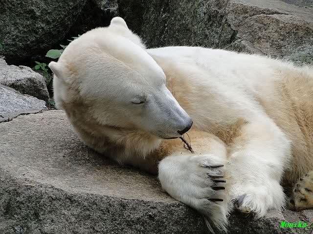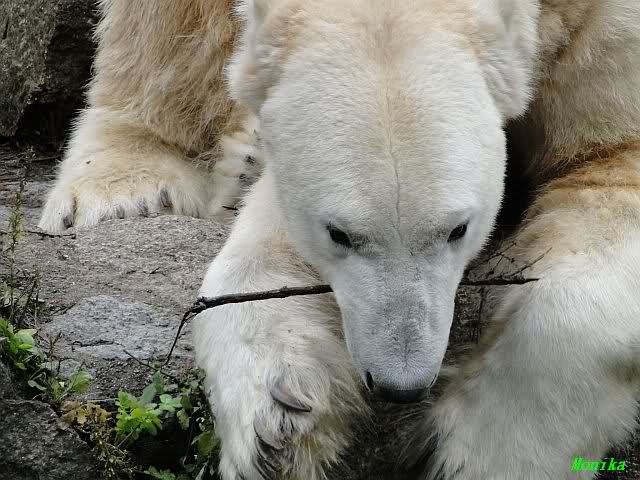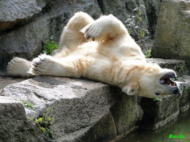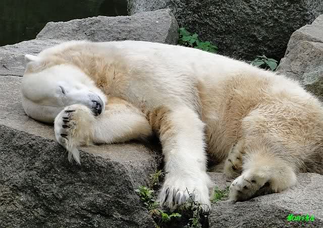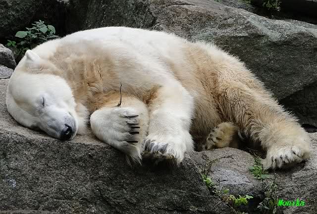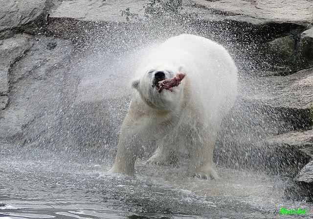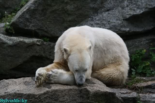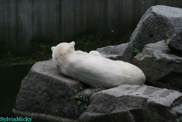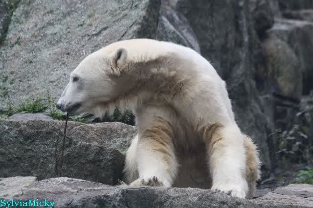 Knut, was habe ich gestern geschrieben? Auf die Felsen sollst du hauen nicht auf die Bärinnen. Okay, so schlimm sieht es eigentlich nicht aus. Laut und ernsthaft Brummen hilft ja auch, schafft Respekt. Und bloß nicht Rückwärts gehen...