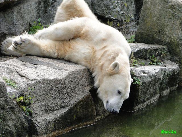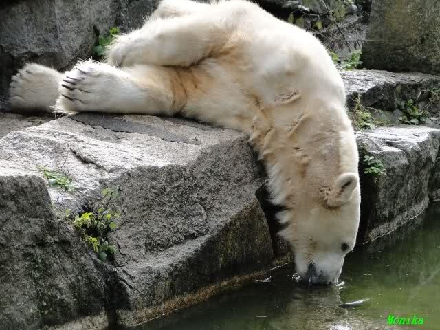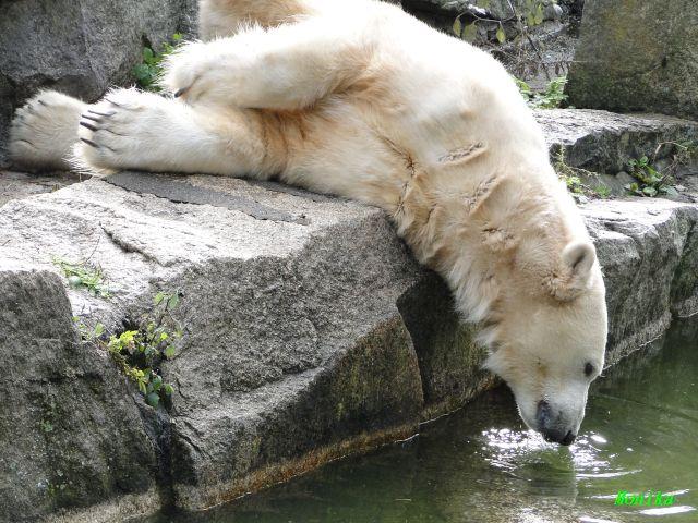 Knut zeigte uns heute, dass Bären-Yoga auch auf dem kleinsten Raum möglich ist, und dabei auch noch Wasser trinken. Das ist schon eine Kunst.