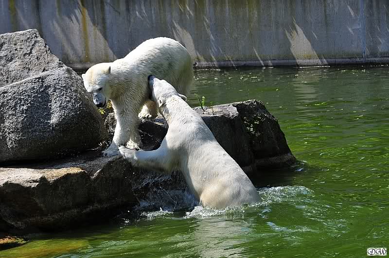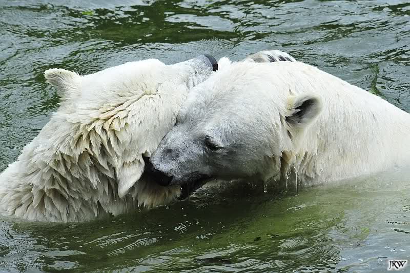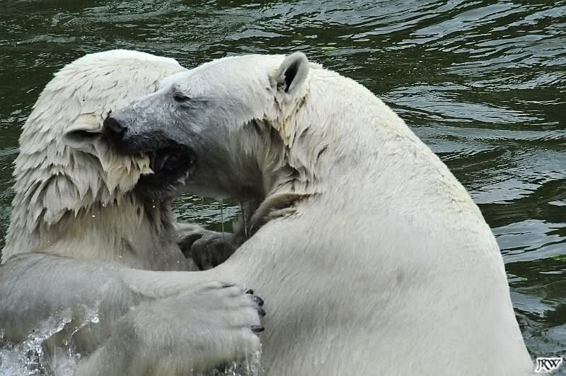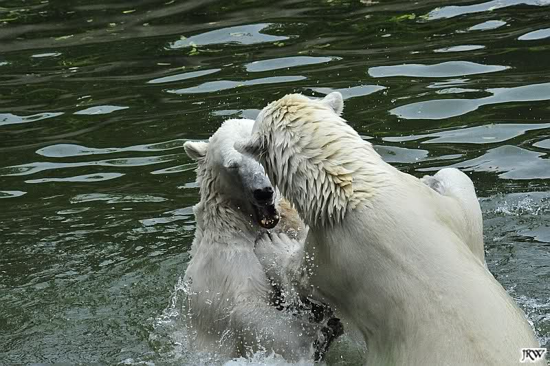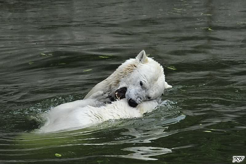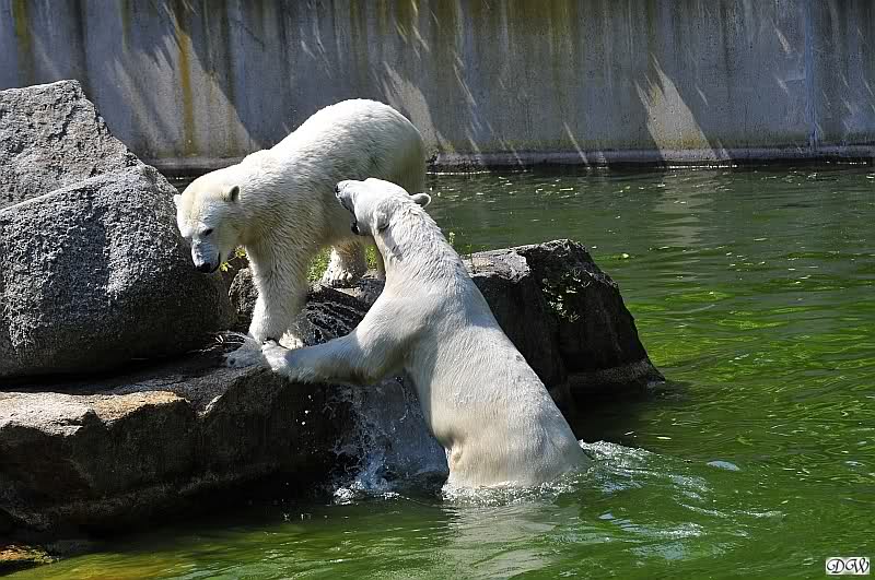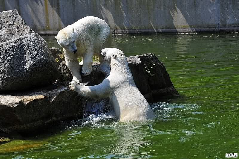 Sind die großen Eisbären zu alt zum Spielen? Natürlich nicht. Sie spielen jeden Tag mindestens zweimal zusammen. Entweder zwei oder alle drei. Wie grausam wäre es, sie zu trennen und ihnen die Lebensfreude zu nehmen.