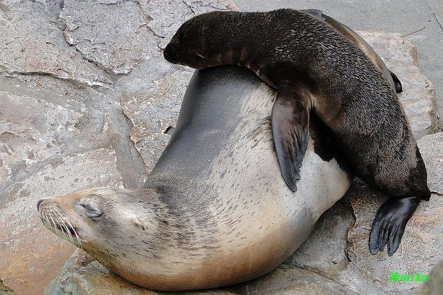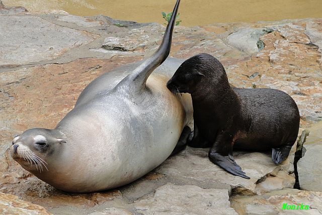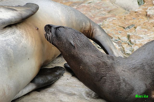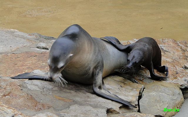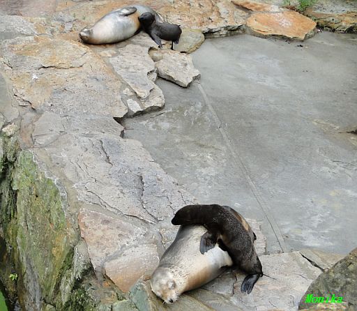 Die beiden Seelöwenmädchen, Gina und Amanda, waren heute wieder auf der Außenanlage. Die Beiden wurden am 06.06.2010 geboren. Auch das Männchen Enzo war mit draußen.