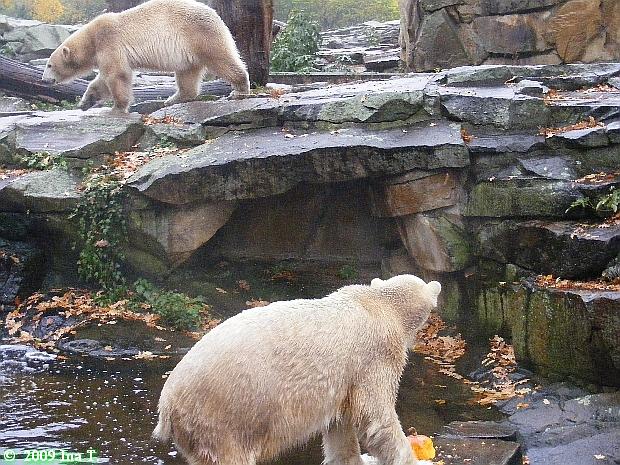 Good evening to you all Knut friends around the world at the end of the day here in Knut City. Take a look to the Knut pictures from afternoon today, done by Monika. They make my evening. The two bears were in a good mood today.