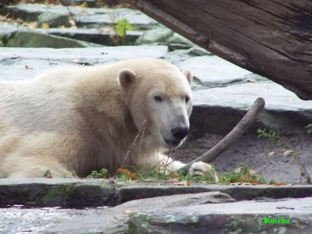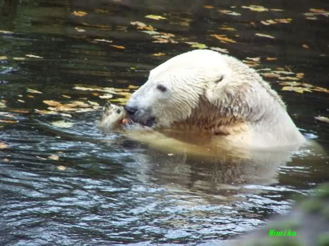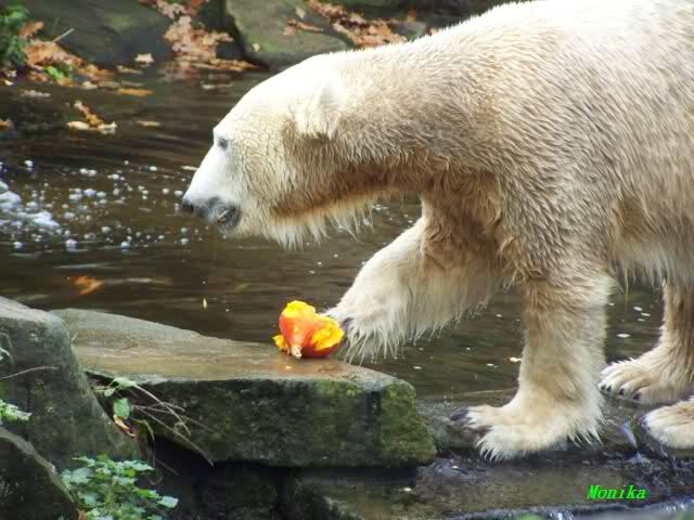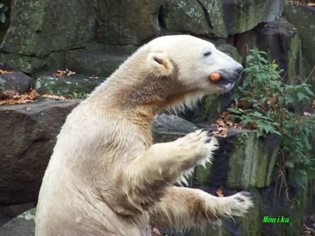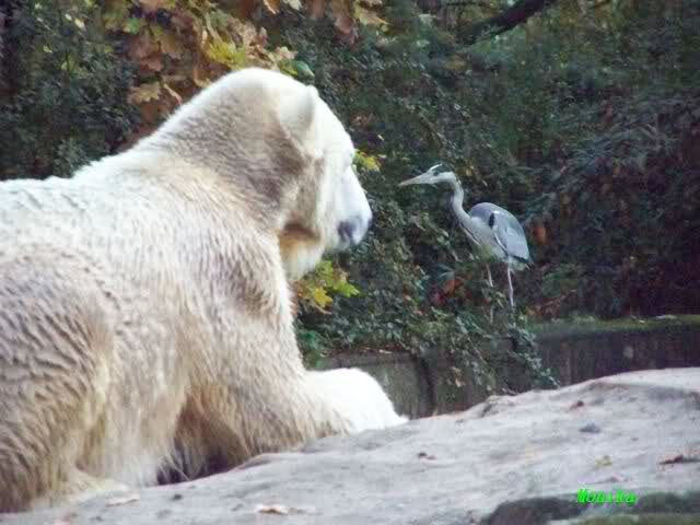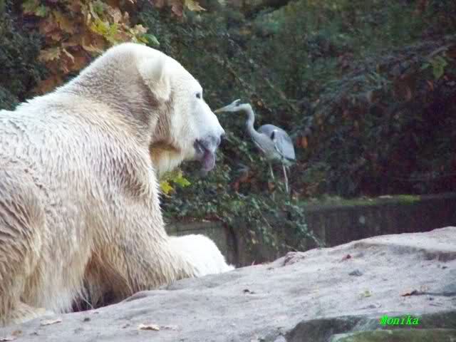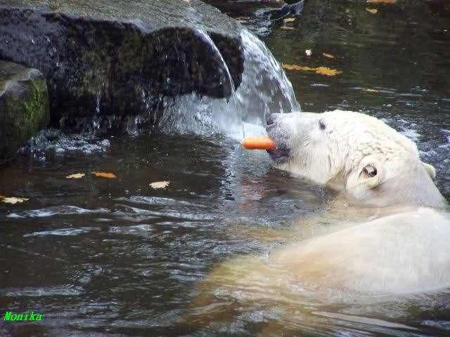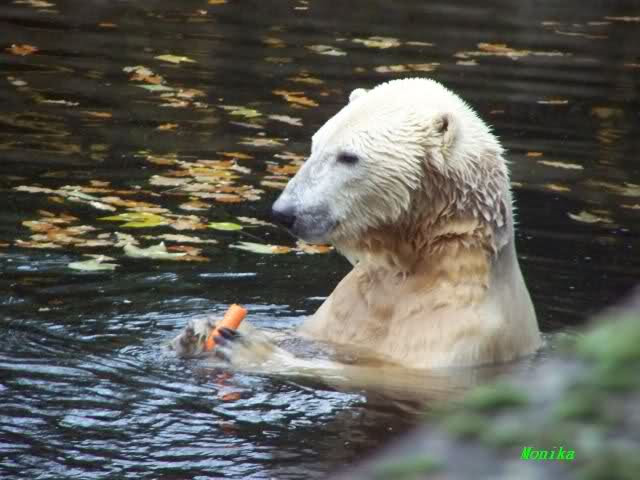 Monika, Du hast uns aber heute auch schöne Fotos mitgebracht. Giovanna auf dem Schlauch liegend sieht so wunderschön aus. Und Knut mit der Karotte im Wasser, herrlich. Highlights auch die Fotos auf denen der Fischreiher betrachtet wird.