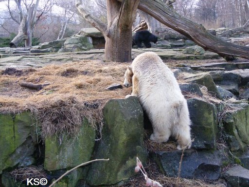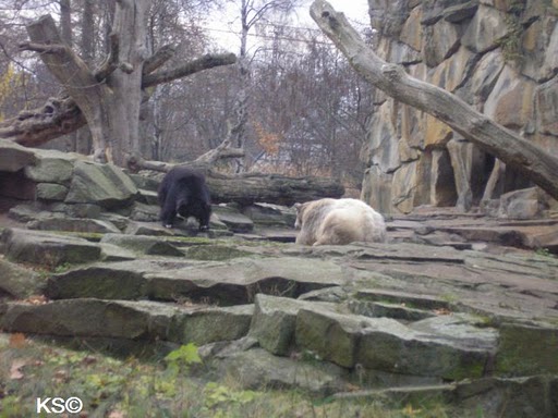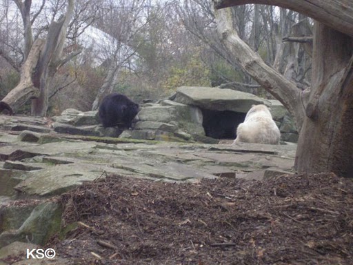 Und IMMER den Geruch von anderen Bären in der Nase....Knut und seine Nachbarn. Kragenbären rechts von ihm, Braunbären links von ihm (aus seiner Sicht)....