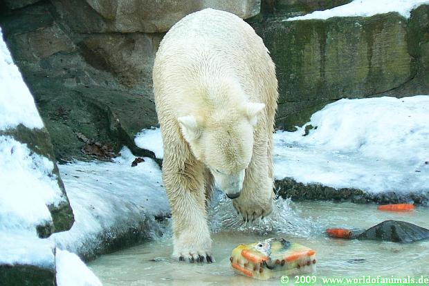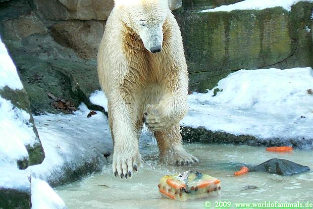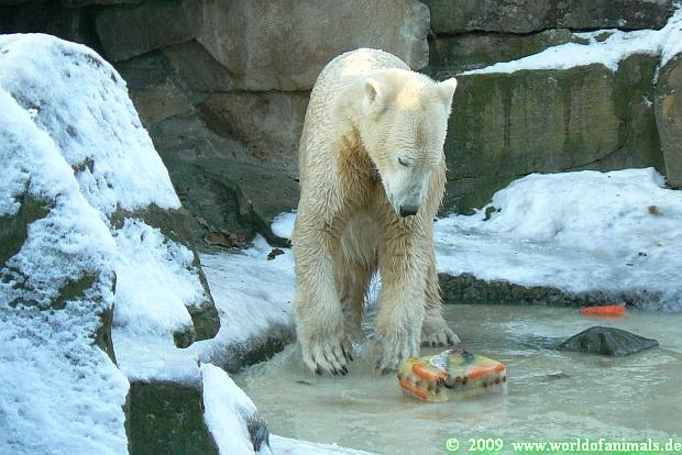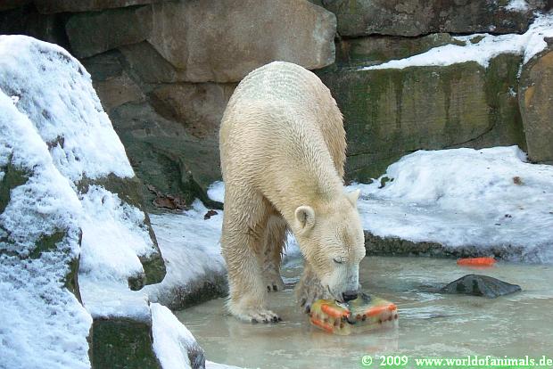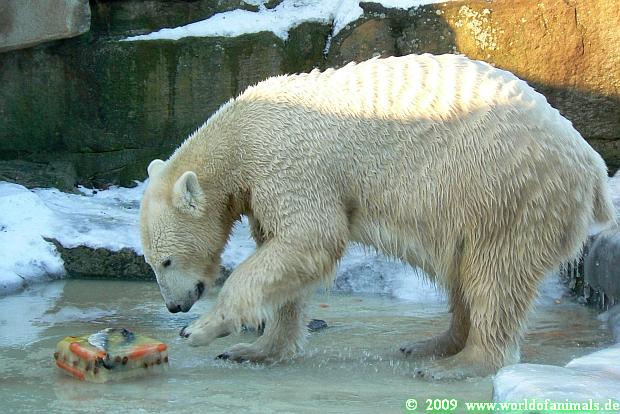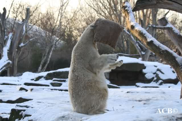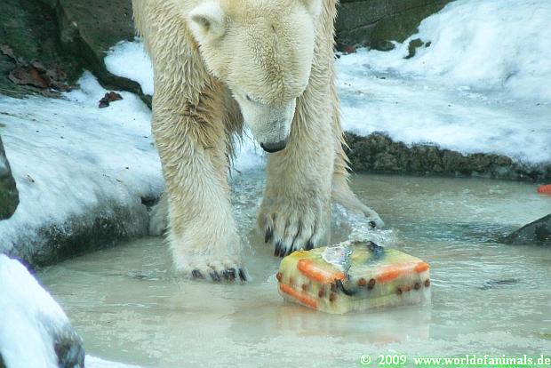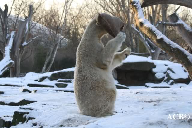 Zu den Zooberichten von Yeo und Anne und Anke, noch ein paar Fotos vom gestern, als Knut den ganzen Tag mit seiner Eisbombe beschäftigt war.