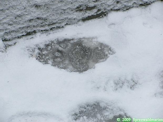 Da passierte das Malheur: Der Jutesack rutsche Knut aus den Zähnen und kullerte hinab in den Graben aufs Eis. Was nun? Knut wanderte hin und her. Wie konnte er nur an den Sack kommen? Bei der Glätte ein aussichtsloses Unterfangen. Also begann Knut etwas Neues: Krähen jagen. Aber die wissen wohl inzwischen, dass Knut ein ganz Lieber ist – allzu viel Respekt vor ihm haben sie nicht.