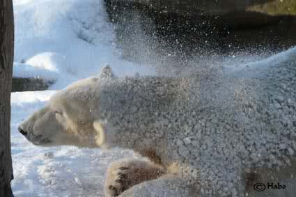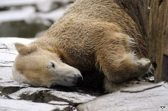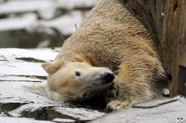 herrlich Eure Zooberichte. Wie Uli schon geschrieben hat, paßt auf das Ihr nicht krank werdet. Aber wie Ihr beide geschrieben habt, hatte Knut ganz schöne Schwierigkeiten "hoch" zu kommen. Warum streut man denn nicht Sand oder Split auf die Steine?