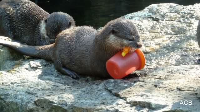 Die Otter reißen die Dichtung ab und spielen damit. Ich habe dem Pfleger Bescheid gesagt, er meinte, dass die Otter machen das immer wieder. Sie essen aber die Dichtung nicht.