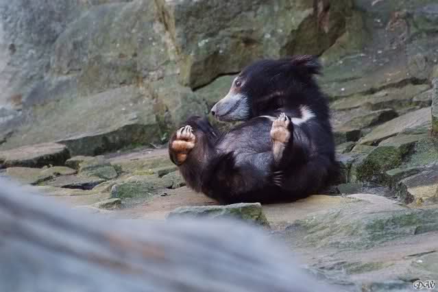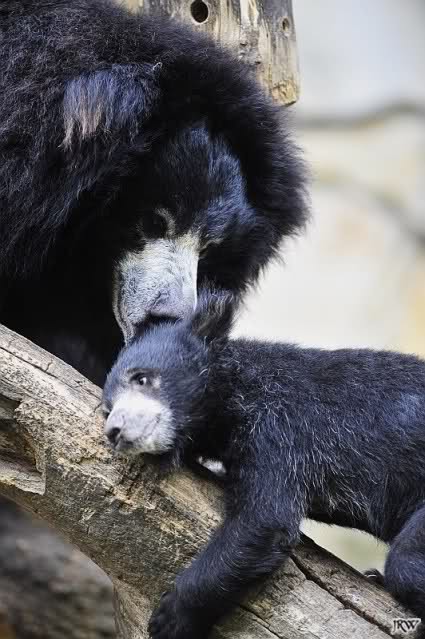 Die drei Lippenbären, die sich das Gehege künftig mit den Schakalen teilen, sind erst seit Apri 2009 im Naturzoo Rheine. Das 12-jährige Weibchen Kama kommt aus dem Berliner Zoo, der dreijährige Franz und die zweijährige Myrthe lebten vorher in Leipzig. Die Tiere reisten in einem Spezialtransporter mit Klima-Anlage nach NRW und mussten sich zunächst im Innengehege eingewöhnen.