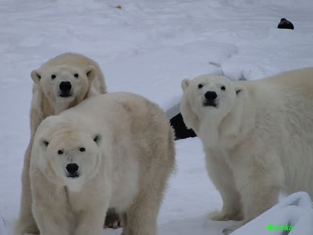 Heute fand wieder eine offizielle Fütterung bei den drei Eisbärinnen statt. Es gab neben Obst und Gemüse auch Fleisch und Fisch.