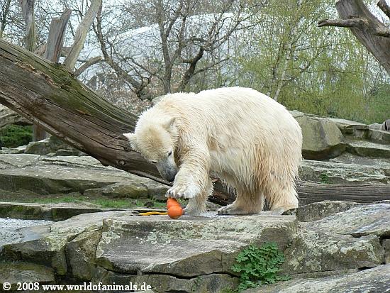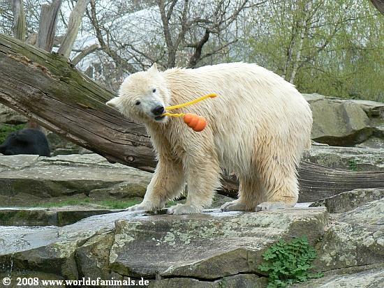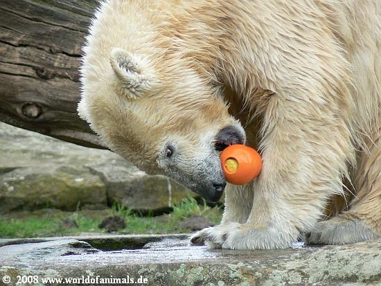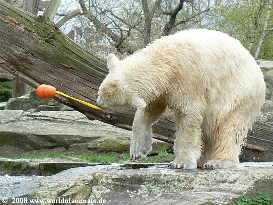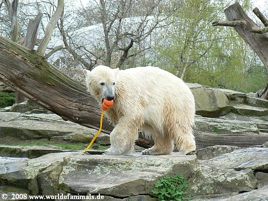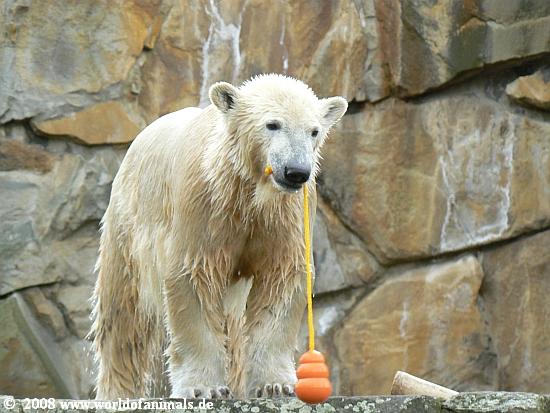 Die Eisbären in Stgt hatten manchmal so kleine blaue Plastikfässer etc. - bekommt Knut nie was dergleichen???Auch keine Holzspielzeuge mehr????