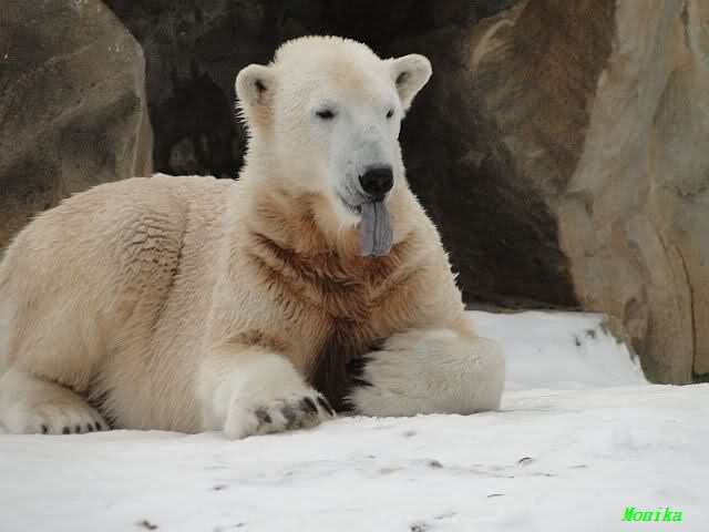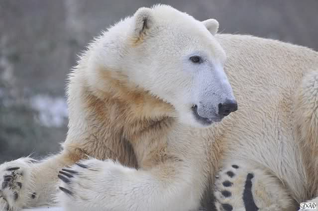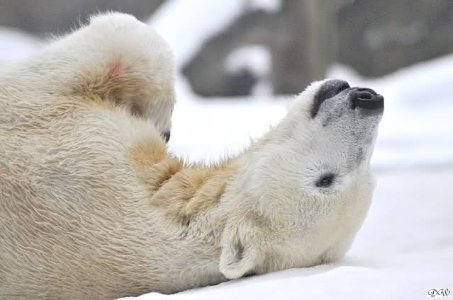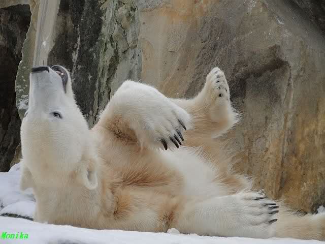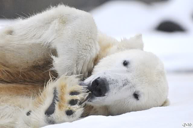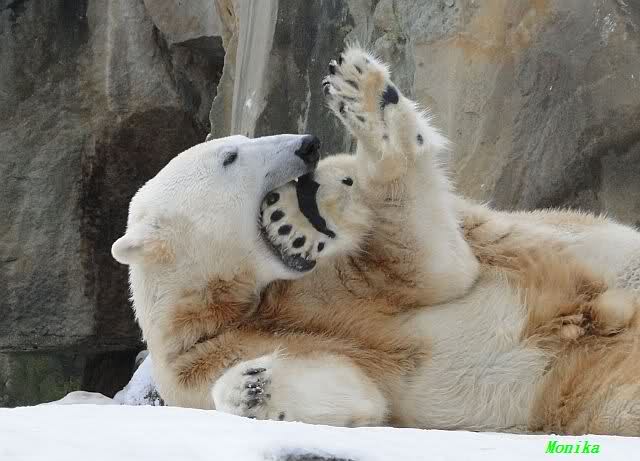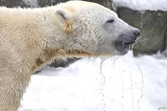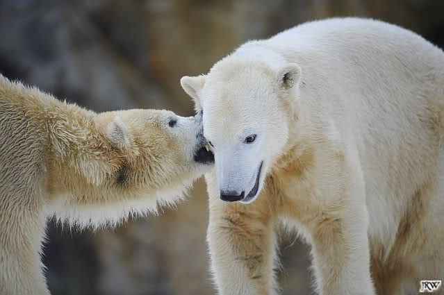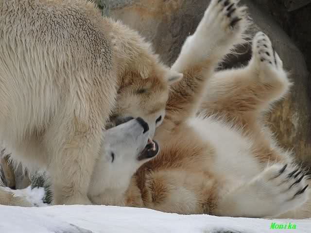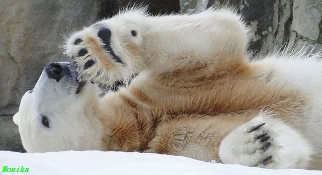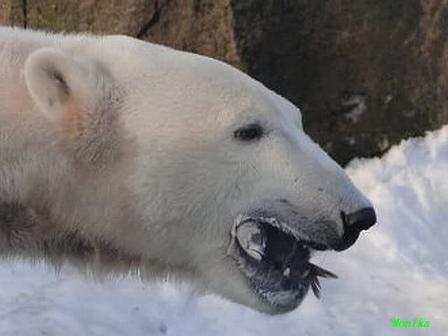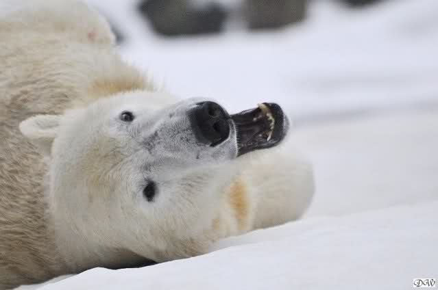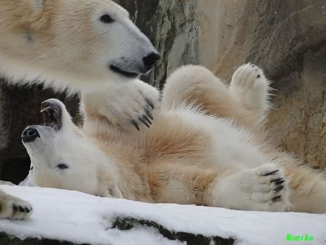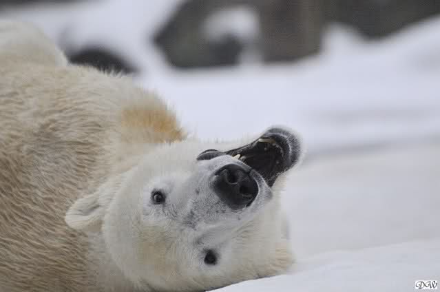 I'd like to send some of Jessie's latest photos to those who claim polar bears have no facial expressions! Look how beautifully Knuti smiles ... and he even laughs....