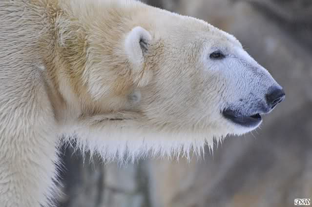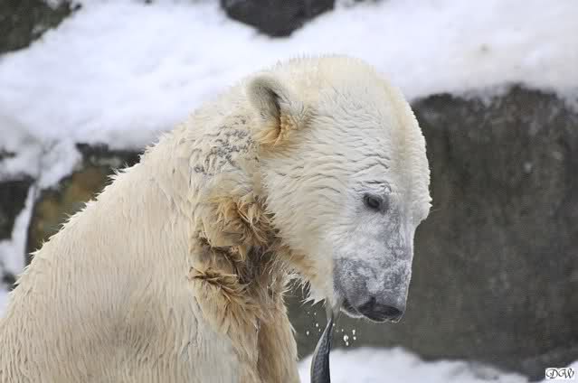 Dann kam Frau Weckert mit dem Futter. Ich bekam eine Privatfütterung geboten, denn ich war immer noch die einzige Besucherin. Das war auch mal sehr schön. Nach der Fütterung redeten Frau Weckert und ich kurz miteinander, auch über Knut und Gianna.