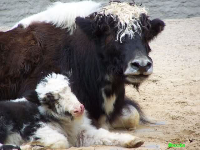 Das jüngste Yak mit Mama