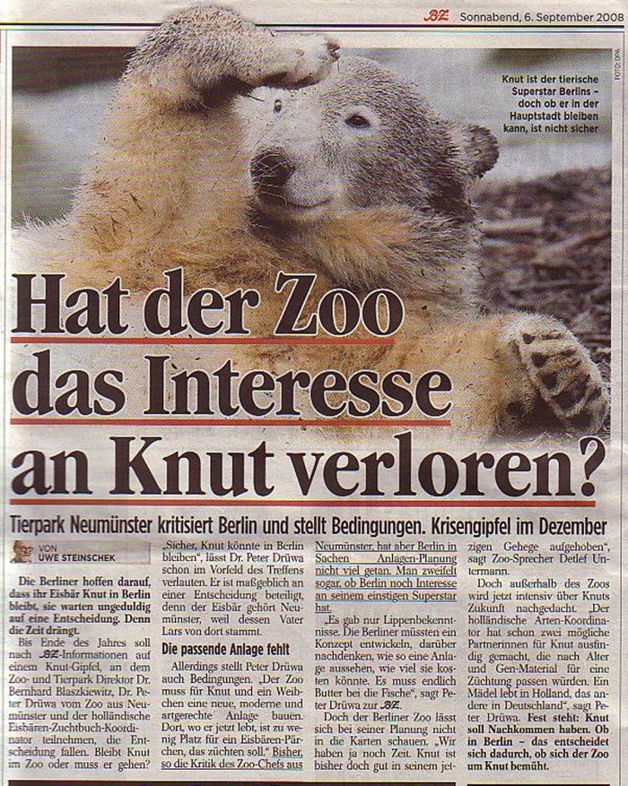 Hat der Zoo das Interesse an Knut verloren? - ist heute die Überschrift in der BZ: