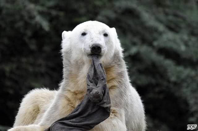Ich ging sofort zu Herrn Dörflein und sagte es ihm. Er meinte, das sei schlimm, er würde gleich nach Knut sehen. Schon schickte er den jungen Pfleger zu Knut mit einem großen Knochen, der ihn von dem ungenießbaren Spielzeug ablenken sollte.
