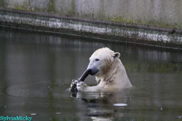 Dann ging sie weg, Knut hinter her. Das ging so über anderthalb Stunden. Als Tosca aus dem Wasser raus ging, ging Knut rein.