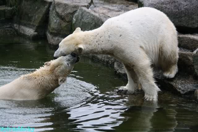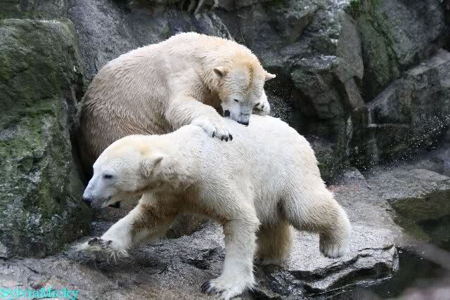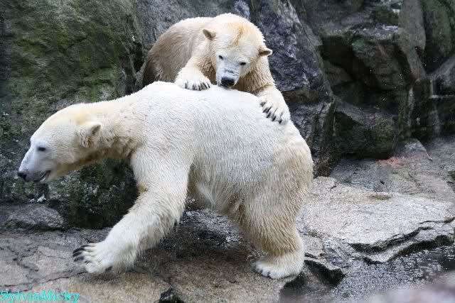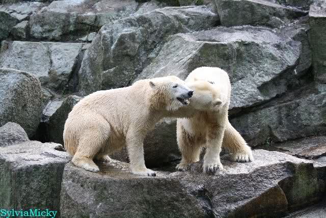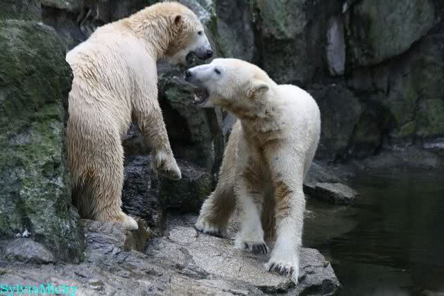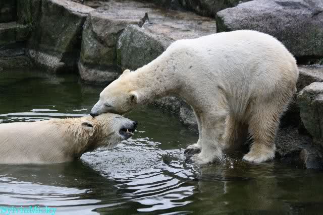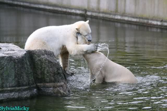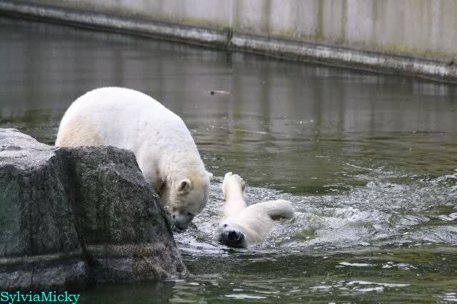 Knut spielt mit Toska, Essen genug und Doris auch wieder im Zoo. Danke Syilvia für diese Information, dann kann der Tag ja gut zu Ende gehen.