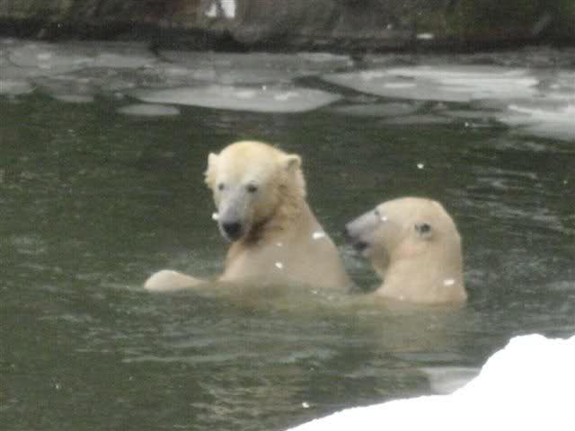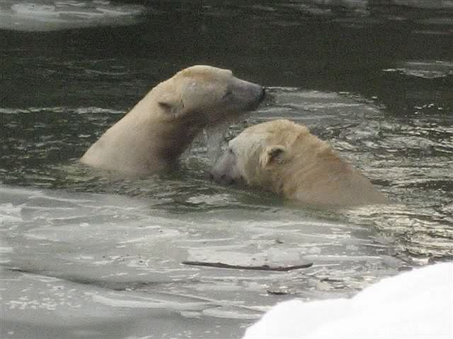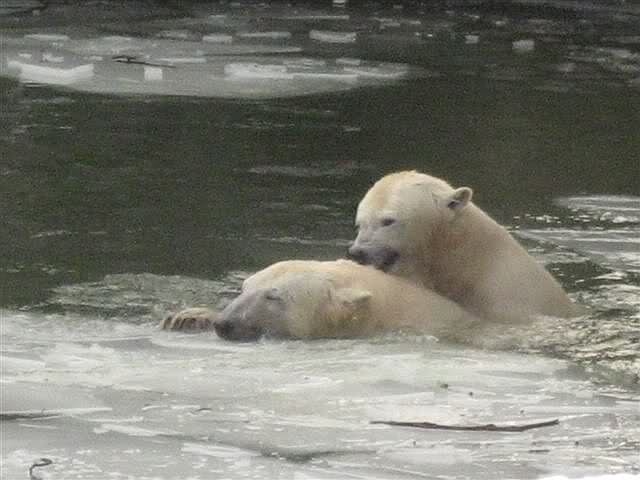 Ich habe gerade drei Fotos von einer Knutfreundin geschickt bekommen, die Knut und Tosca im Wasser zeigen.