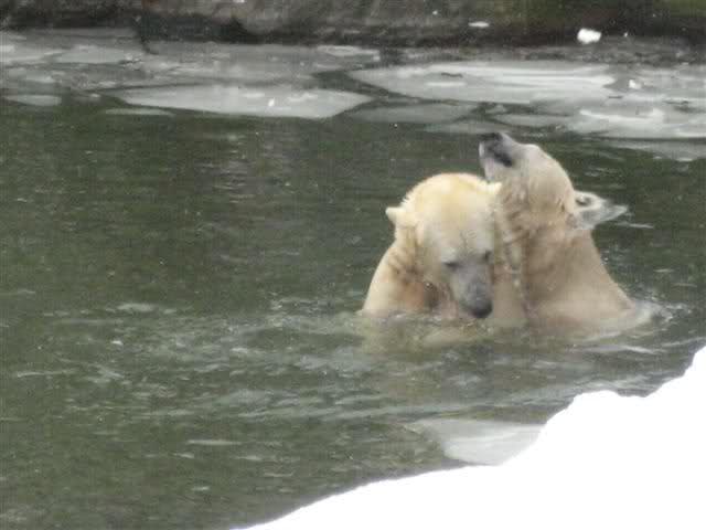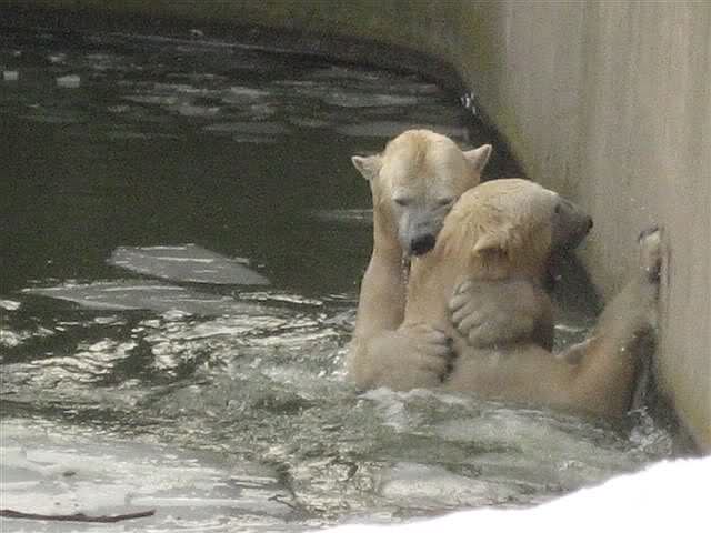 Und heute setzte Knut noch einen drauf und spielt mit Tosca im Wasser. Habe gerade einen Anruf einer Knutfreundin bekommen, die mir diese Neuigkeiten auch erzählte.