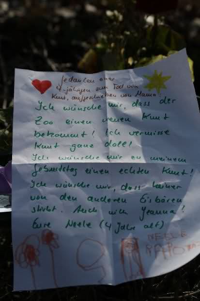 Auch heute waren wieder viele Menschen am Gehege und legten Blumen und Briefe hin. Auch viele Zeichnungen von Kindern waren darunter.