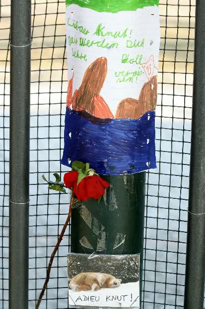 *Knut starb an einer Hirnerkrankung* - wodurch ausgelöst, fragt man sich? *Knut ist ertrunken*, na klar, aber weshalb? Er ist durch diese *Hirnerkrankung* (Schlaganfall ist auch eine Hirnerkrankung) ins Wasser gefallen und ertrunken. Egal, wie die Enduntersuchung ausfällt und ob sie jemals tatsächlich an die Weltöffentlichkeit getragen wird, Knut hatte die letzten Monate viel Stress, das haben viele Besucher tagein, tagaus miterleben müssen. Wir alle sind gegen eine Mauer gelaufen, Knut war bedingungslos der Willkür dieses Direktors ausgesetzt. Armer Knut, aber nun hat er Frieden und wird nicht als *Zuchtbulle* von einem zum anderen Zoo transportiert, damit seine Gene überall verteilt werden. Das ist ihm erspart geblieben, denn die unsensible Meinung des Zoochefs, dass Knut nun nicht mehr als *Zuchttier zur Verfügung steht*, bringt alles zum Ausdruck.