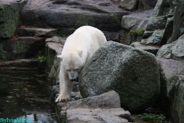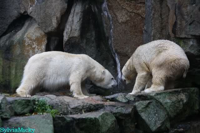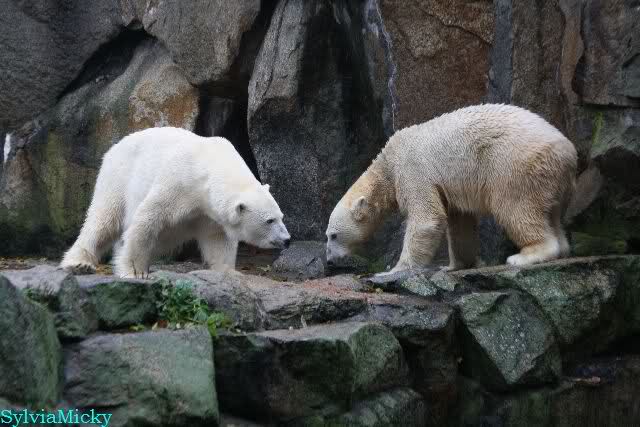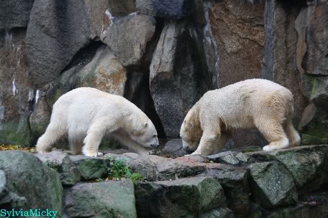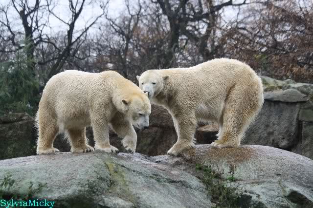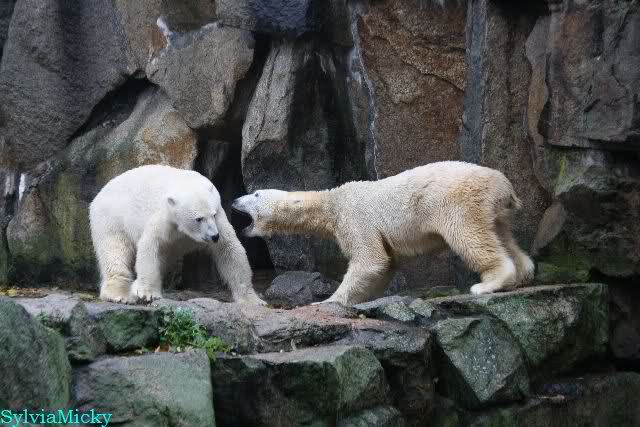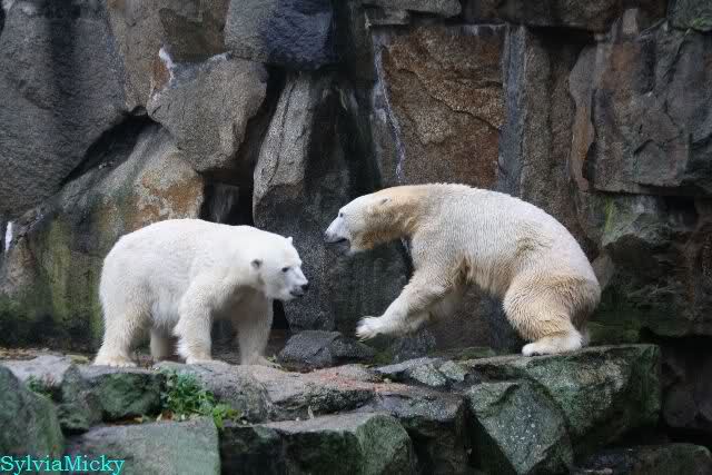 hat sich etwas an der seit langem andauernden Situation zwischen den Eisbären Weibchen und dem Eisbären Knut verändert oder kann man Letzteren immer noch am Rande des Felsens beobachten, wie er den Kontakt zu den Artgenossen scheut?