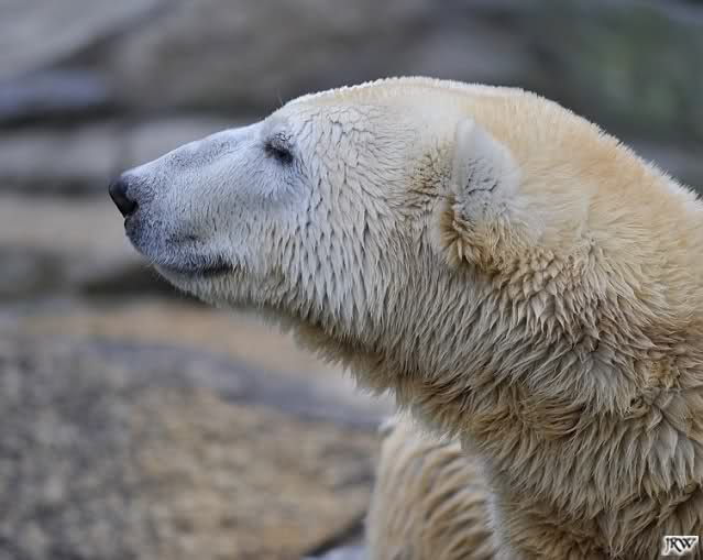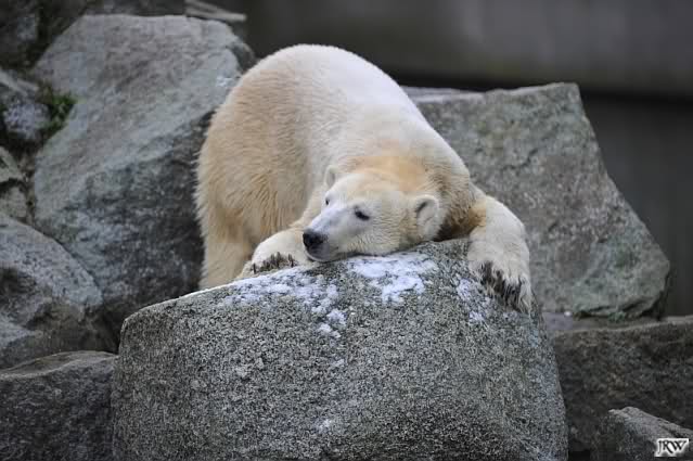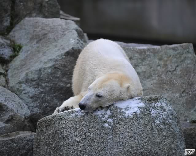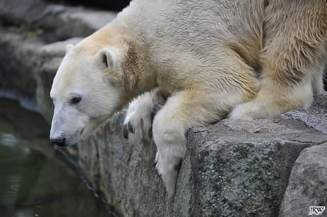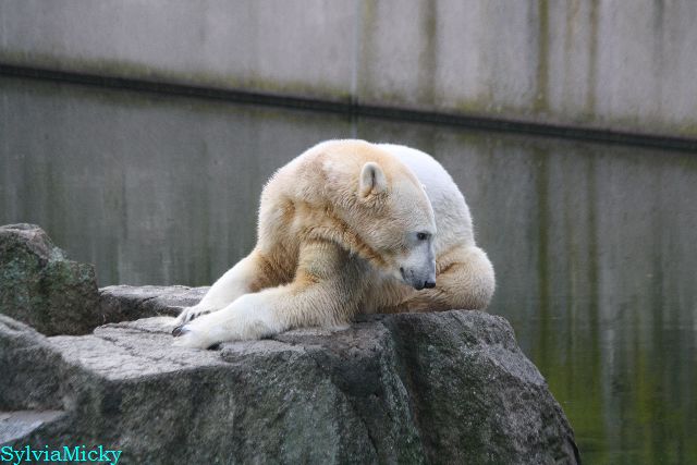 Heute früh lag Knut auf seiner Ecke. Gegen Mittag immer noch. Am Nachmittag auch. Er schaute immer wieder nach den Bären, ob sie noch da sind.