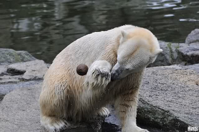 Wieviel Freude ein Bär mit einer Kokosnuss haben kann... die Fotoserie zeigt uns einen zufriedenen Knut. Danke Doris für die schönen Fotos.