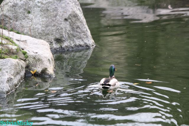 Ein Entenpärchen schwamm im Wasser. Ich glaube, Knut wäre gerne hinter her geschwommen aber er traute sich nicht.