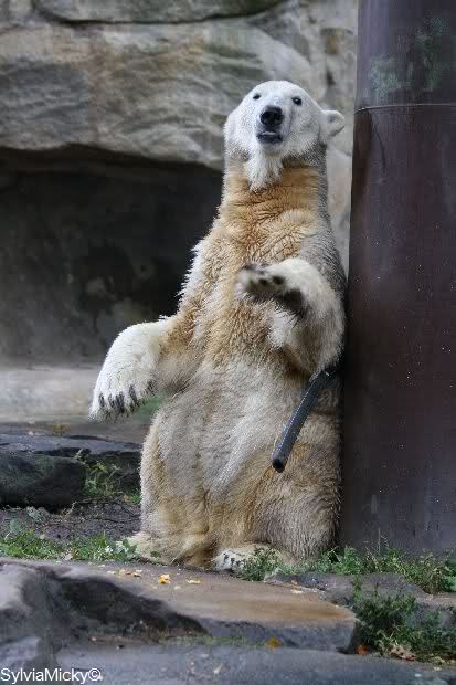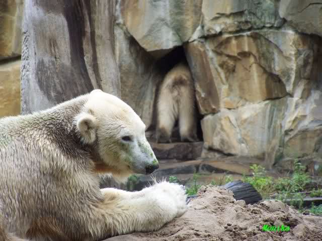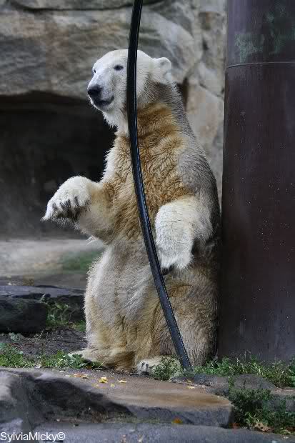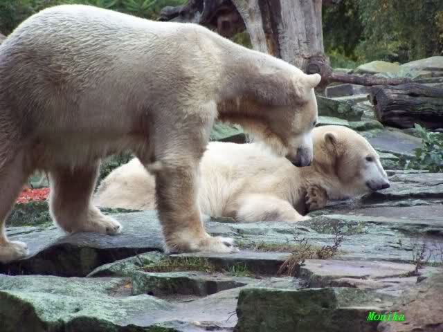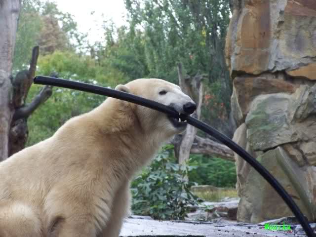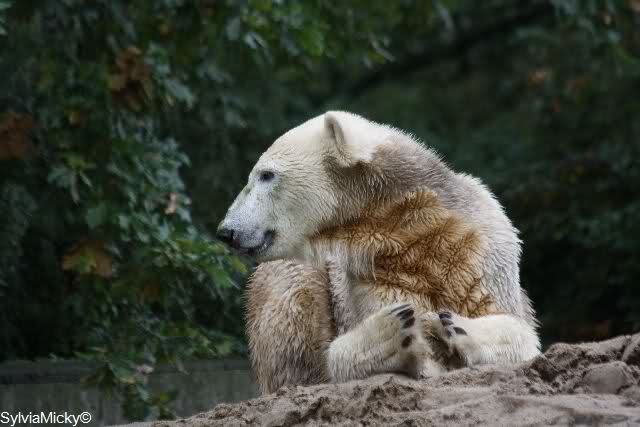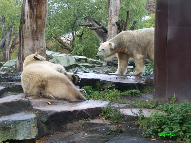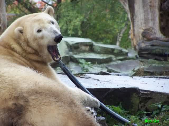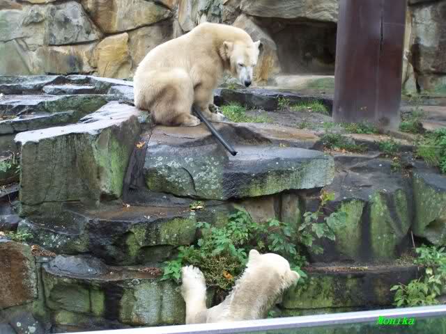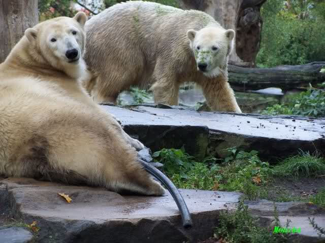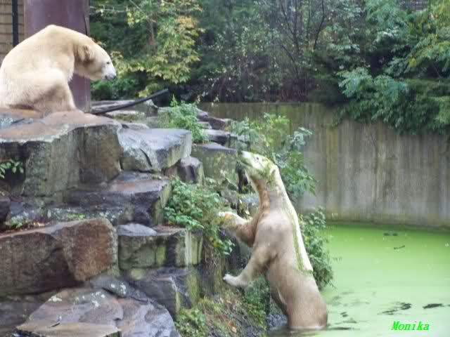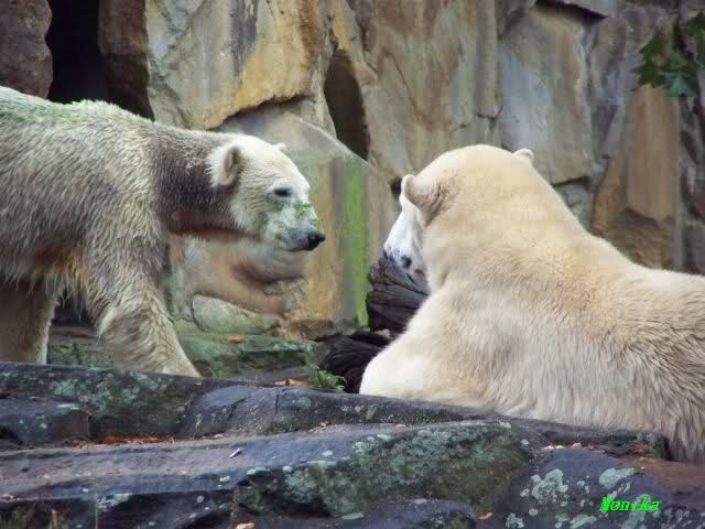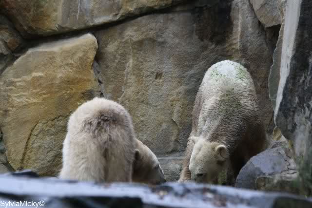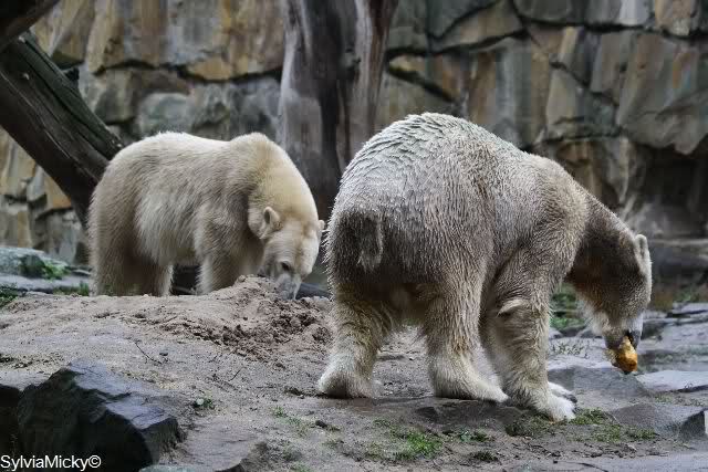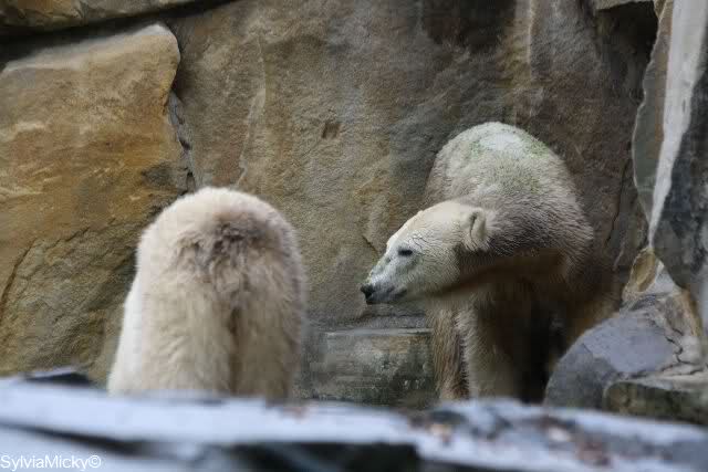 In der Bären WG im Zoo scheint ja von Tag zu Tag mehr Akzeptanz zu herrschen. In kleinen Schritten geht es ja voran. Schön, das Giovanna Knuts Spielzeug entdeckt hat, Pech für Knut. Inzwischen lernt er ja auch die Verteigung.