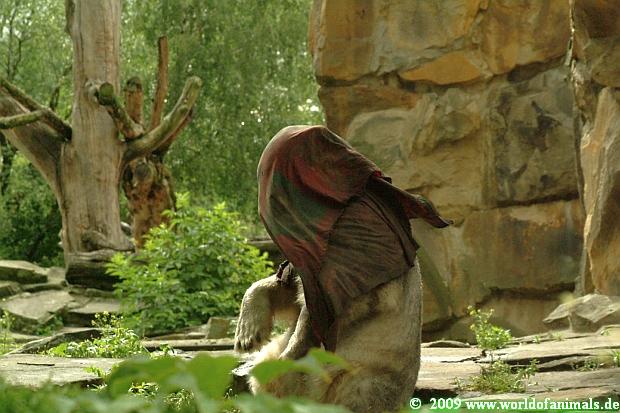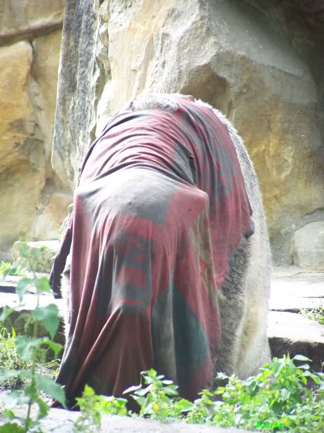 Na ja, nicht ganz richtig. Es ist unser Knuti. Und die Decke hat er sich ganz alleine umgelegt. Es hat ihn keiner dazu gezwungen. Ob Zirkustiere das auch zwanglos tun würden ?